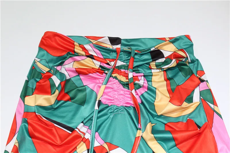 Женский спортивный костюм с принтом, комплект из двух предметов, майка с лямкой на шее и юбка миди со складками на шнурке, 2021