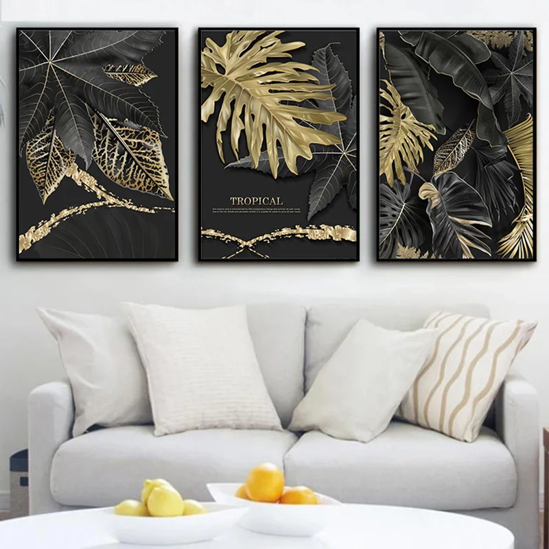 Картина с золотыми растениями, домашний декор, Скандинавская Картин...