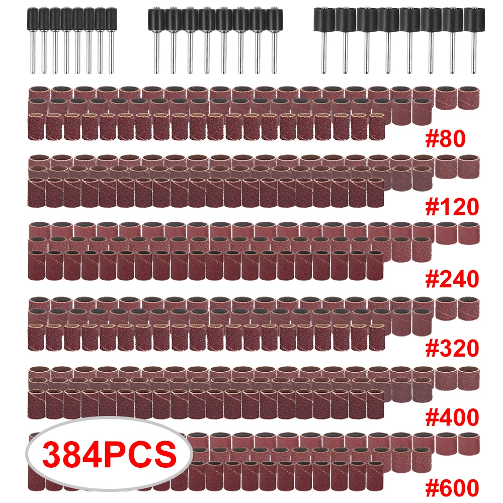 384 шт. набор шлифовальных барабанов зернистость 80-600 шлифовальная лента для рукавов Dremel электрическая мини угловая шлифовальная насадка электроинструменты
