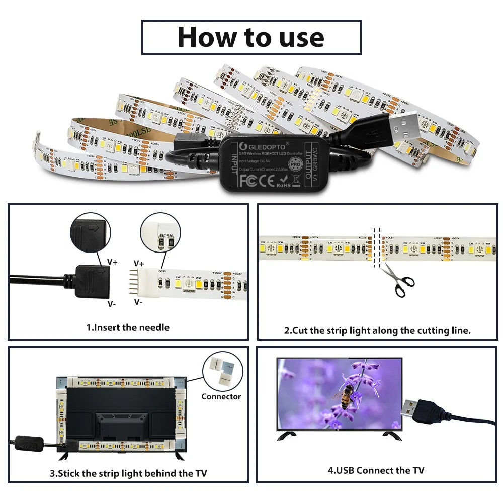 Умный ТВ GLEDOPTO ZigBee 3,0 Mini, 5 В, USB, RGBCCT, Светодиодная л...