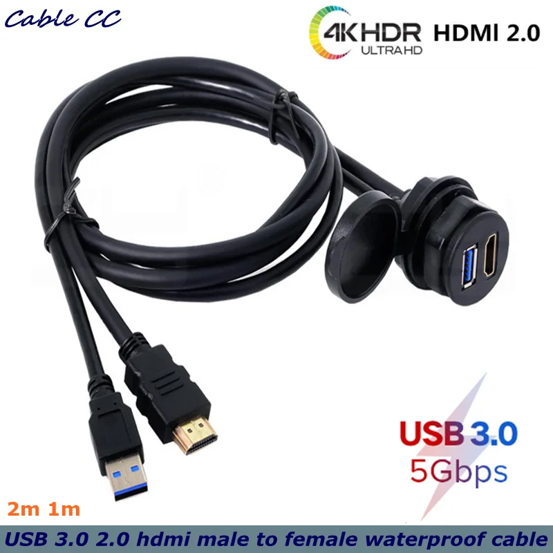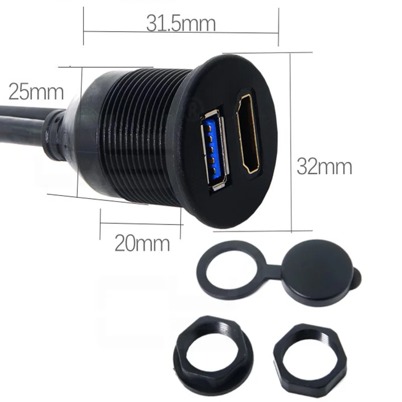 Водонепроницаемый встраиваемый монтажный кабель USB 3,0 и HDMI-совместимый штекер-гнездо для приборной панели для кораблей, автомобилей и мотоциклов
