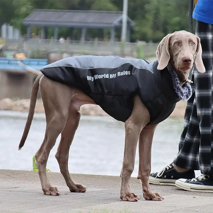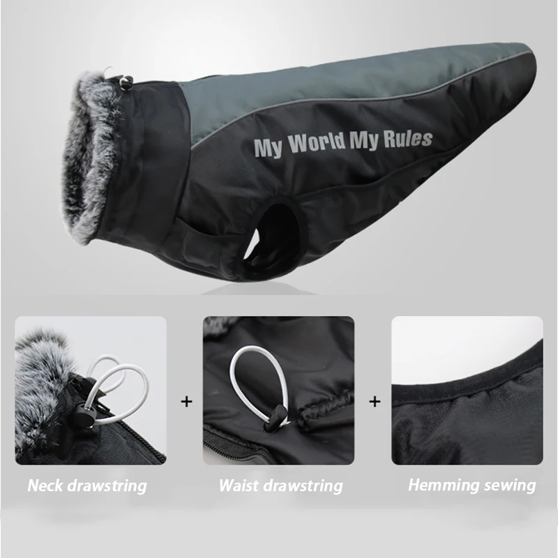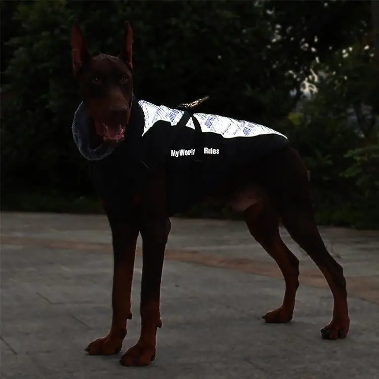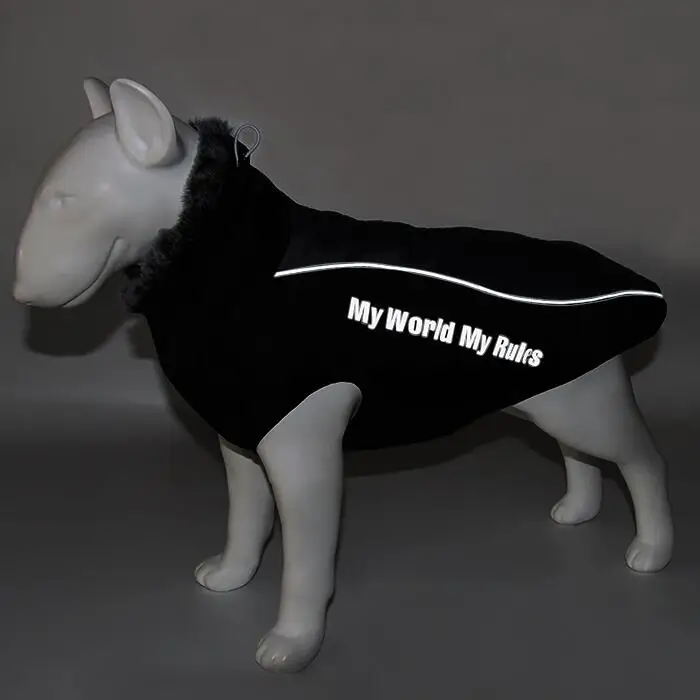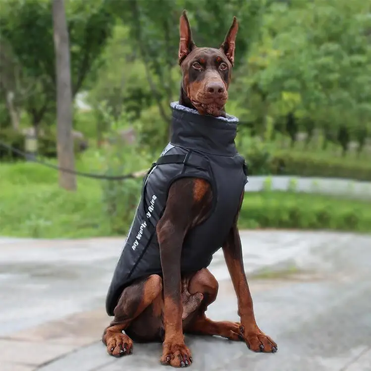 Машинная стирка, очень теплая и удобная в ношении в холодную зимуВетрозащитный, водонепроницаемый, плотный мехЛегко надевать и снимать, идеально подходит для прогулок, бега и путешествийРазмер подходит для различных пород собак, средних больших собак, питбулл, золотистый ретривер