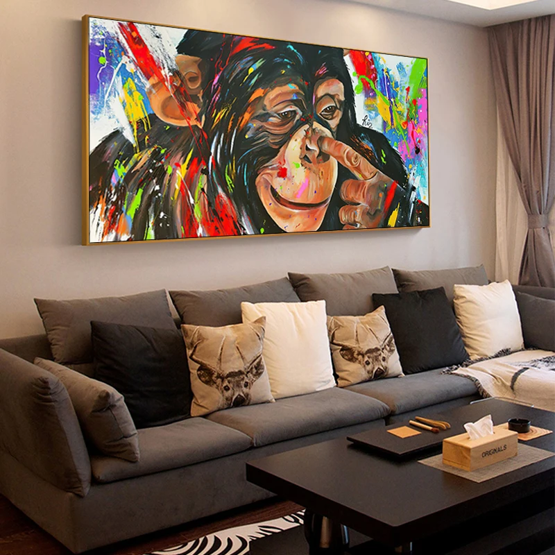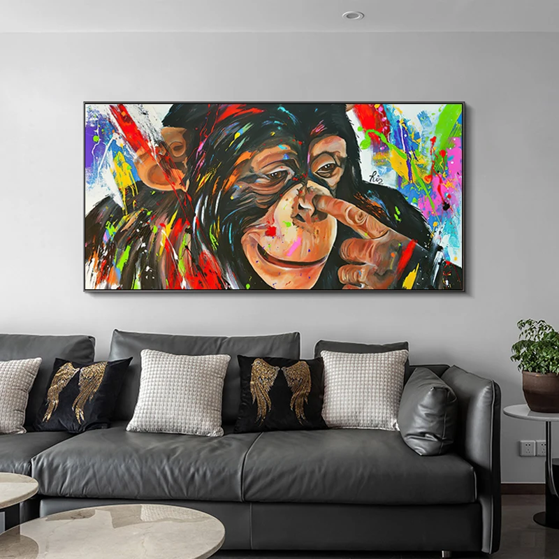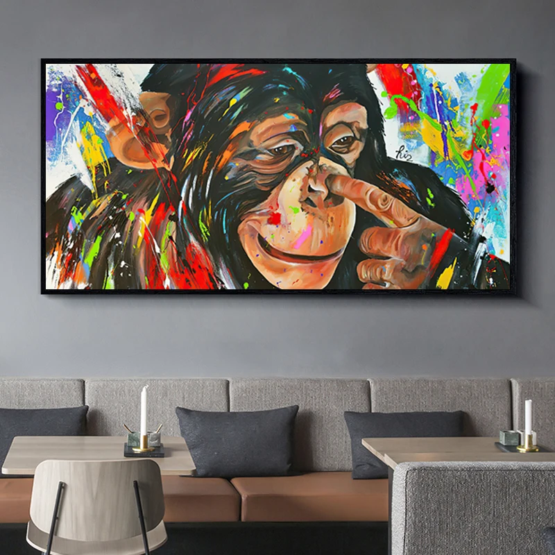 Симпатичный фон с изображением уличного граффити постеры с животными и печать на холсте Живопись Забавный обезьяна настенные картины для Гостиная домашний декор