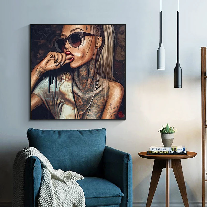 Крутая сексуальная женская одежда, очки, Картина на холсте, портрет, тату, плакат и печать, настенные художественные картины для гостиной, Настенный декор