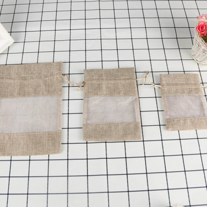 Джутовые мешки из органзы, 5 шт.лот, мешочек на шнурке для свадебве...