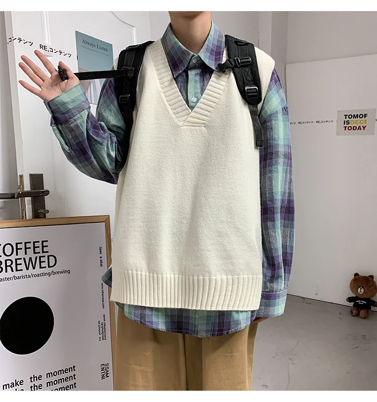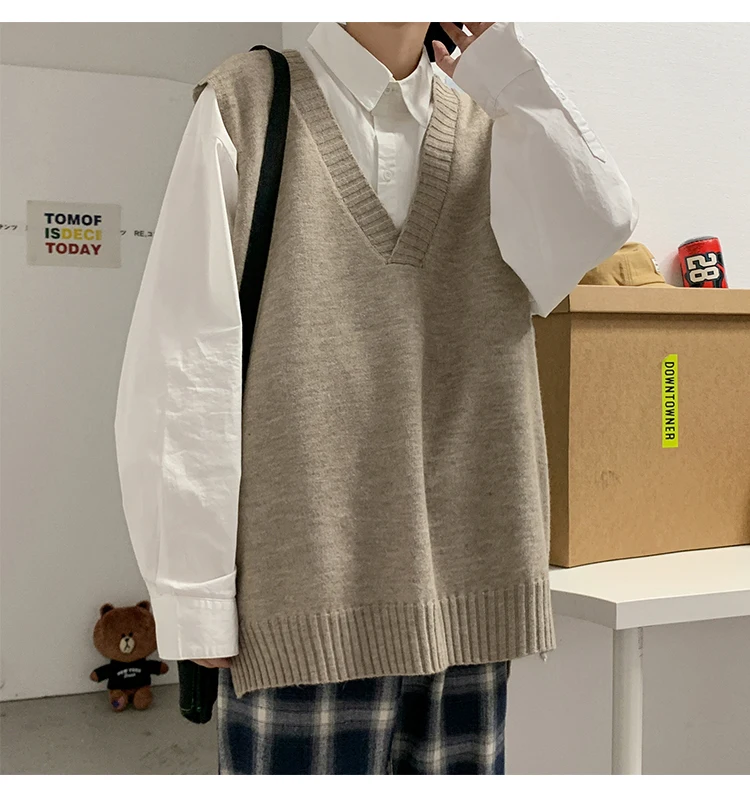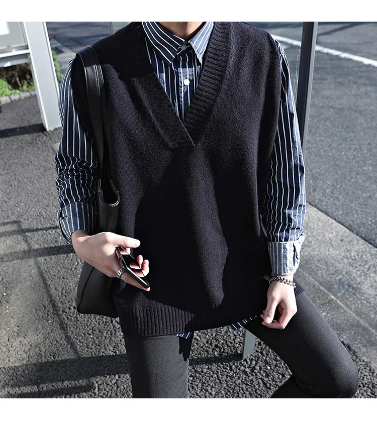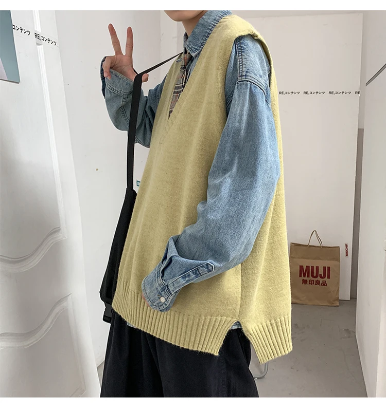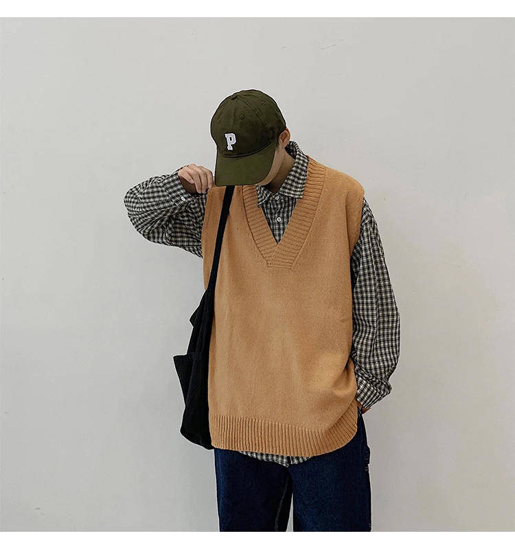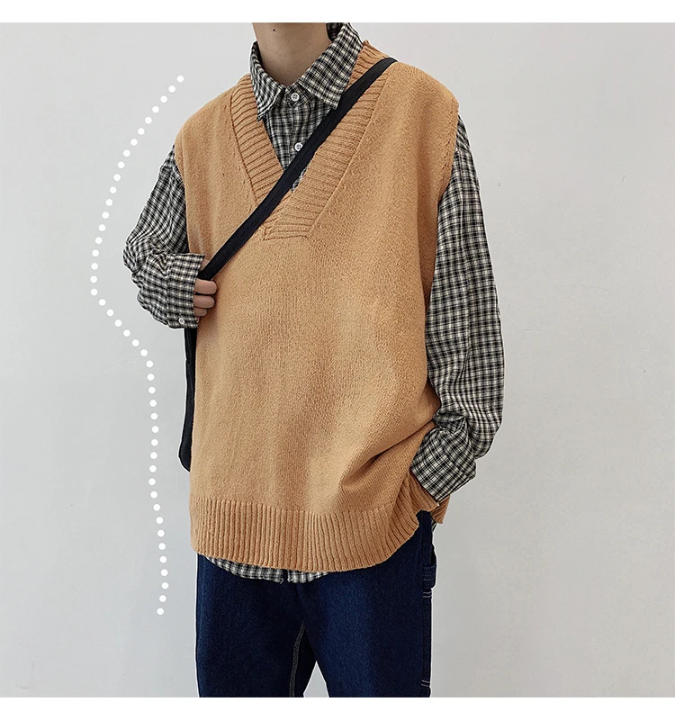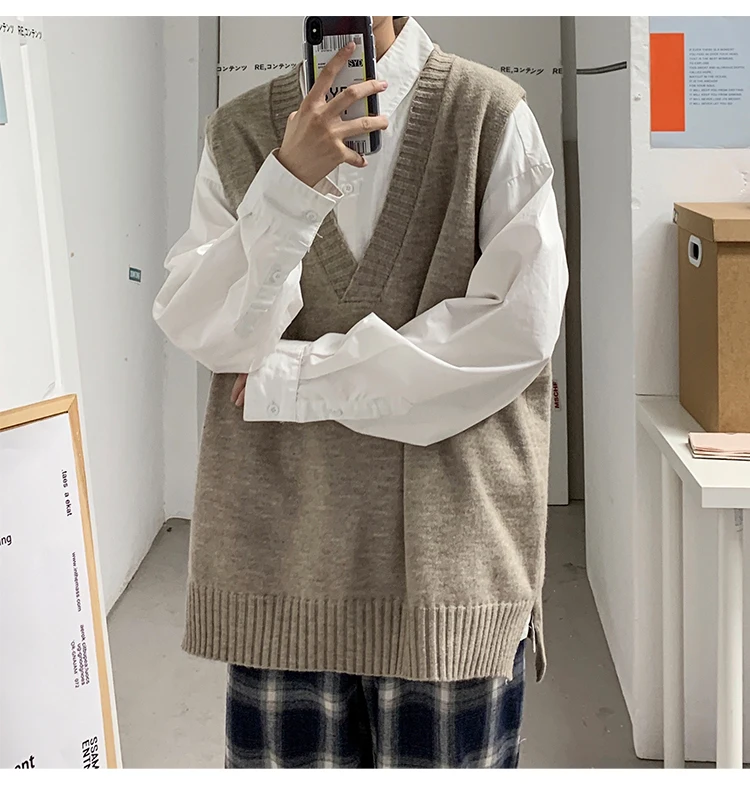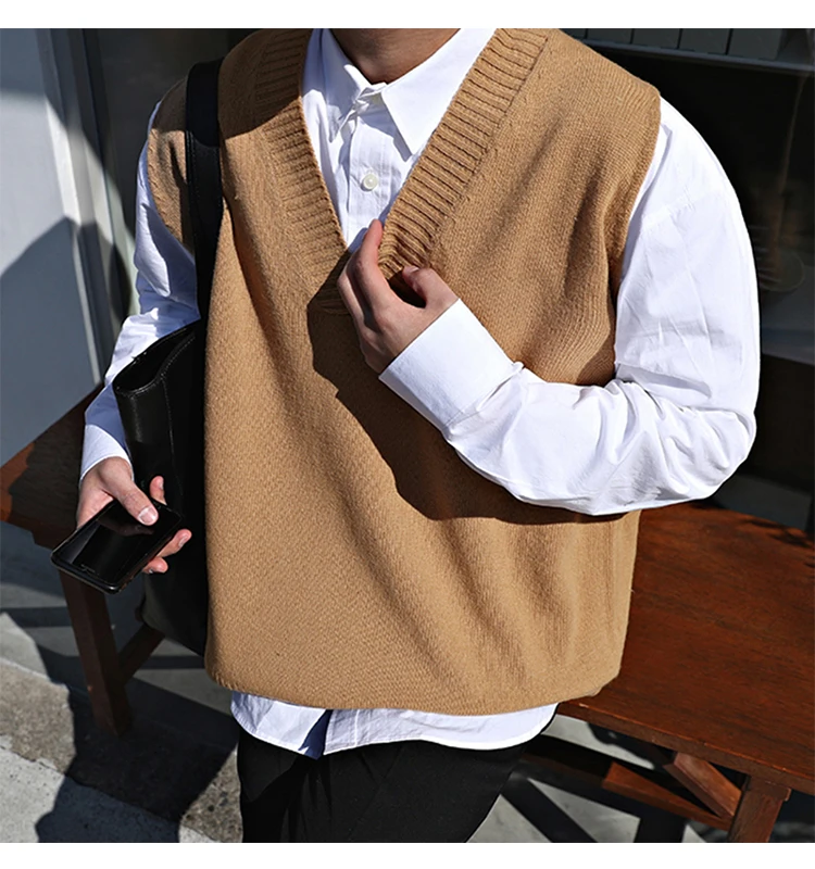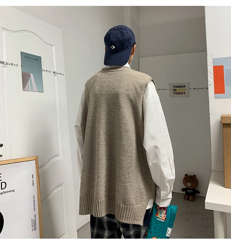 2020 мужской модный пуловер без рукавов, шерстяные свитера, теплый вязаный Свободный жилет, 6 цветов, пальто, одежда, размера плюс, M-2XL