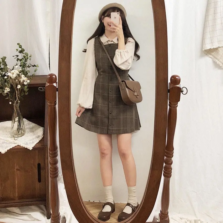 QWEEK, мягкое милое мини-платье для девочек, Женские винтажные клет...