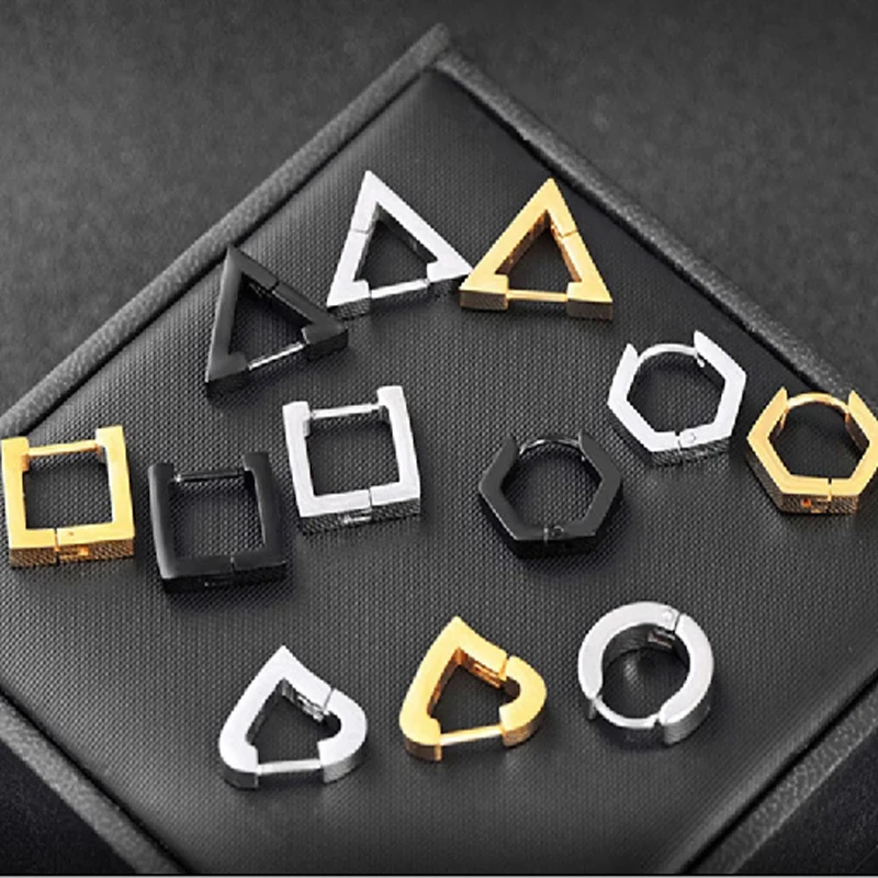 Серьги-гвоздики из титановой стали для мужчин и женщин, уличные геометрические многоугольныев форме сердцатреугольника, антиаллергенные украшения для ушей, лучший подарок