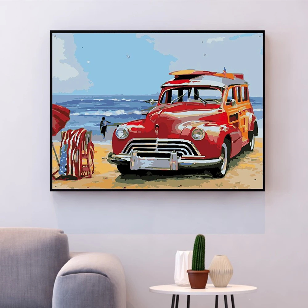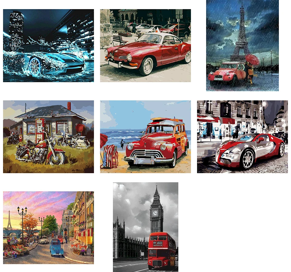 Современный городской Ретро автомобиля трактор LED подсветка ВОДИТЬ Автомобиль DIY картина по номерам Ландшафтная Настенная картина Раскраска по номерам уникальный подарок для дома