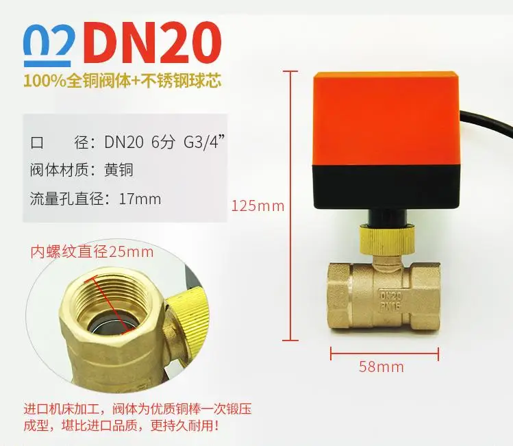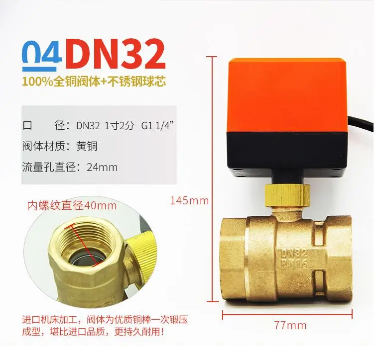 AC220V DC24V Электрический латунный шаровой клапан, холодная и горячая вода/водяной пар/тепловой газ 2 способа латунный моторизованный шаровой клапан