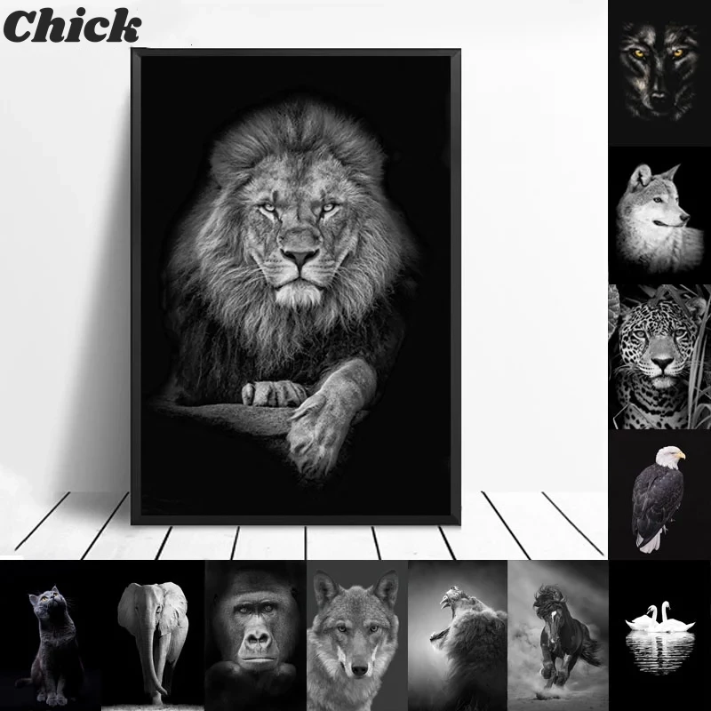 Современная животная волк Лев Орел слон настенная Картина на холсте...