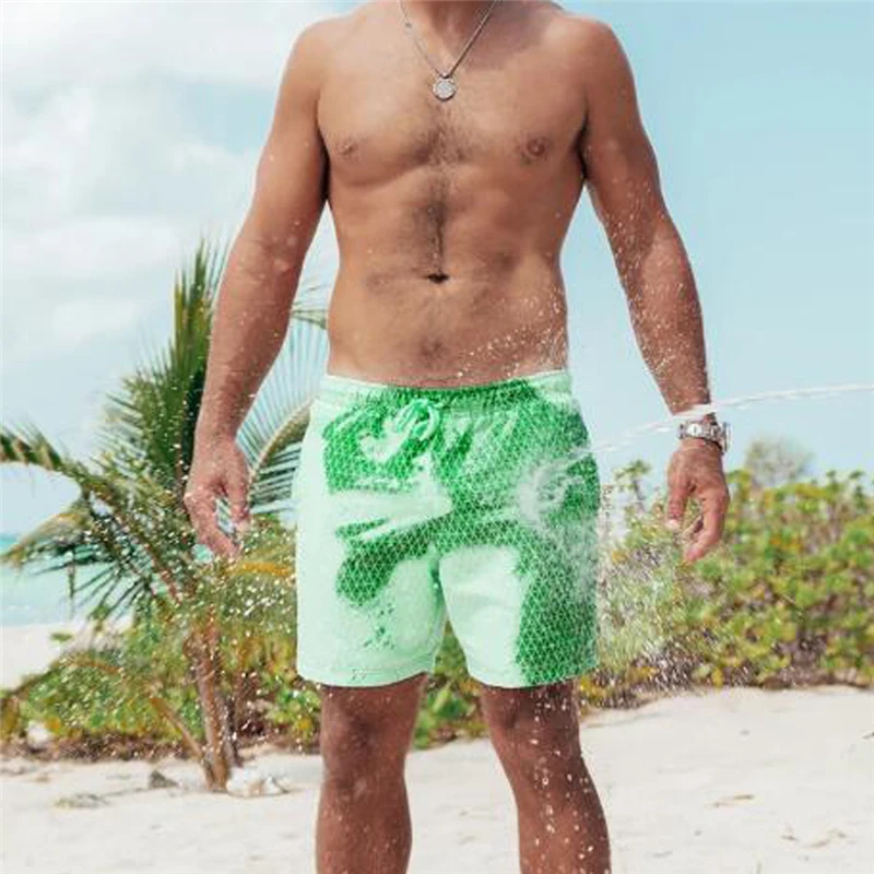 Пляжные шорты, меняющие цвет, мужские быстросохнущие купальники, шорты для серфинга, плавания