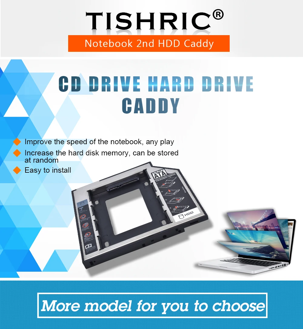 TISHRIC 2nd HDD Caddy 9,5 мм, 9 мм, Optibay SATA 3,0 2,5 SSD жесткий диск HDD чехол Корпус для ноутбука CD-ROM адаптер