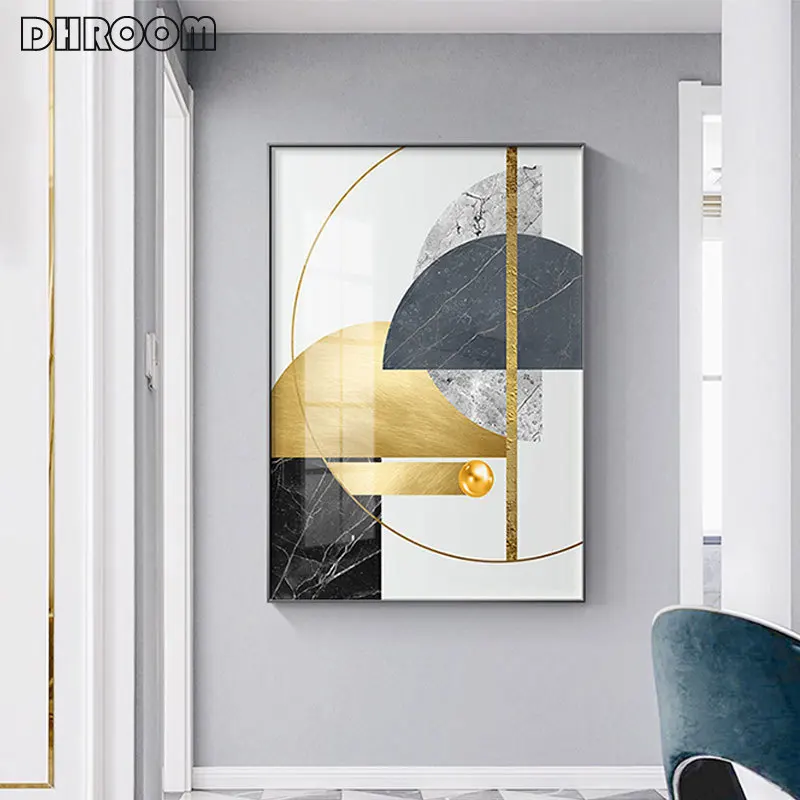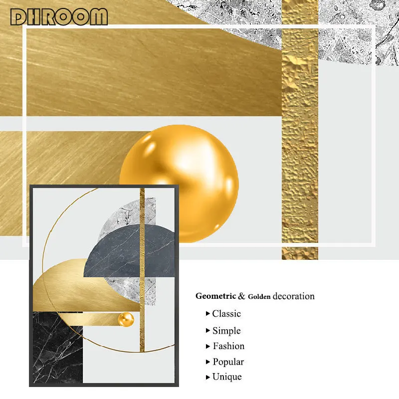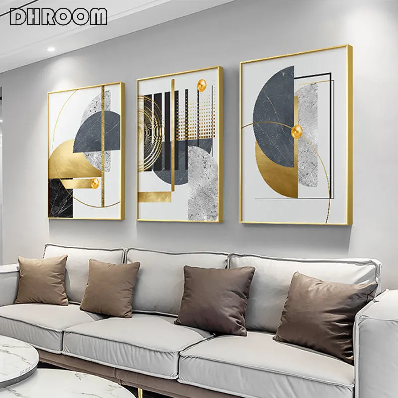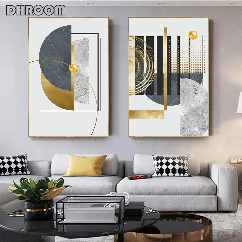 Абстрактный Золотой Серый холст, плакат, печатный геометрический цвет, настенная фотокартина для гостиной, домашний декор