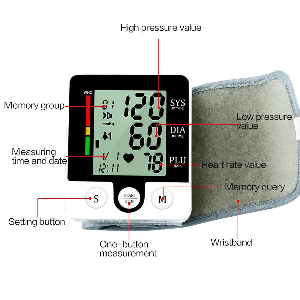 Монитор артериального давления на запястье, цифровой медицинский сфигмоманометр, измеритель артериального давления, автоматический тонометр