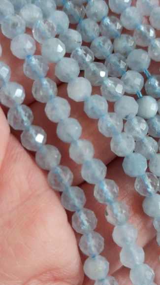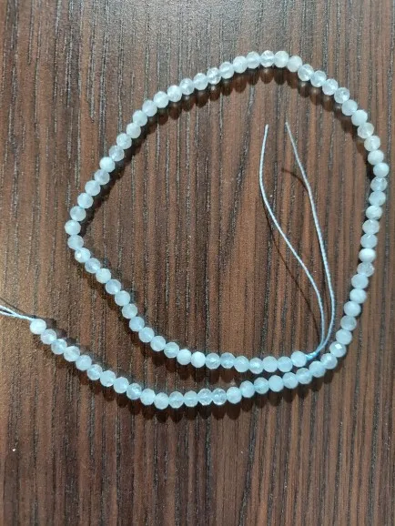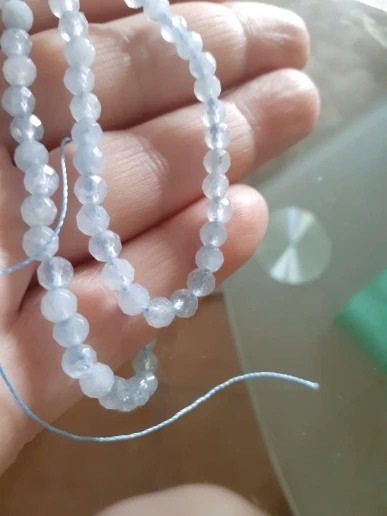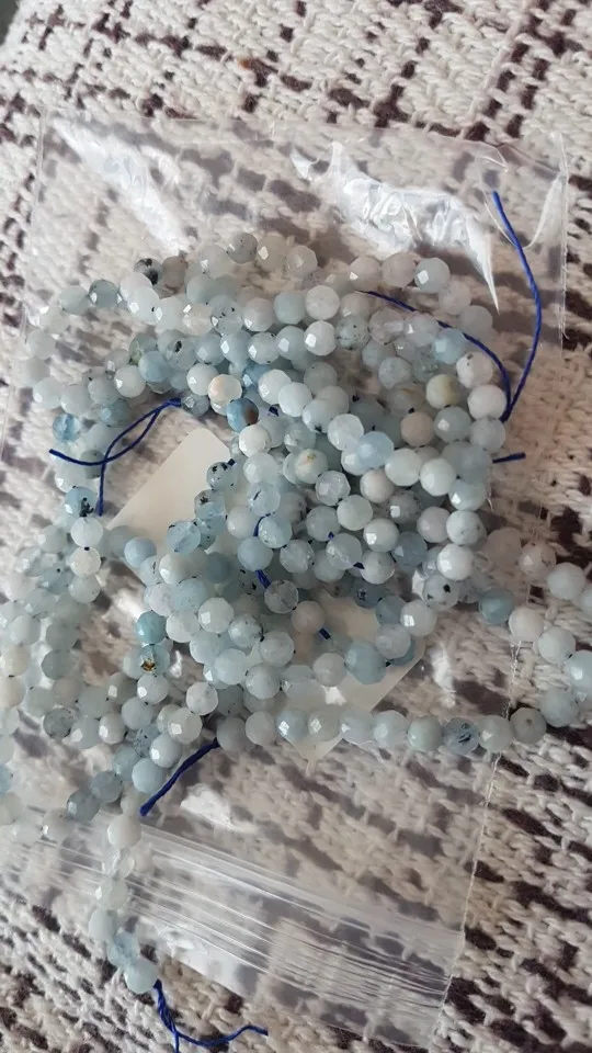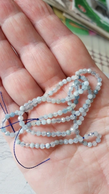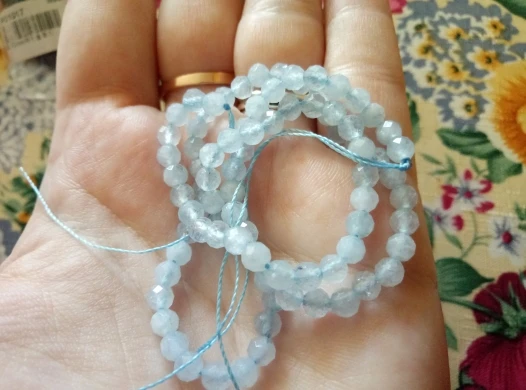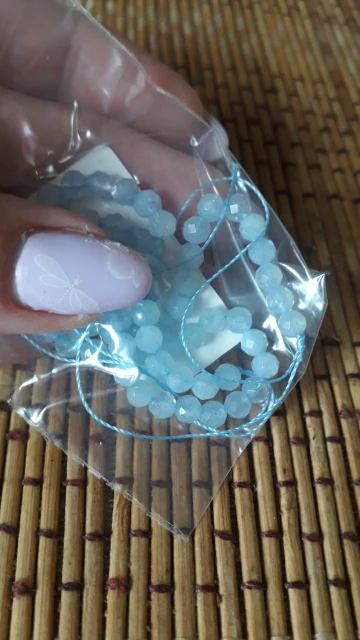 Бусины красивые нежно голубые, есть прозрачные, но парочка попалась с дефектами. Что еще более неприятно, вместо 95 бусин в нити было 87, а в ниточке гелиолита, которую я заказала в этом же магазине 91, что дает суммарную недостачу 12 бусин на две нити. Я считаю, что это чересчур много, поэтому снимаю звезду. Я была лучшего мнения об этом магазине.