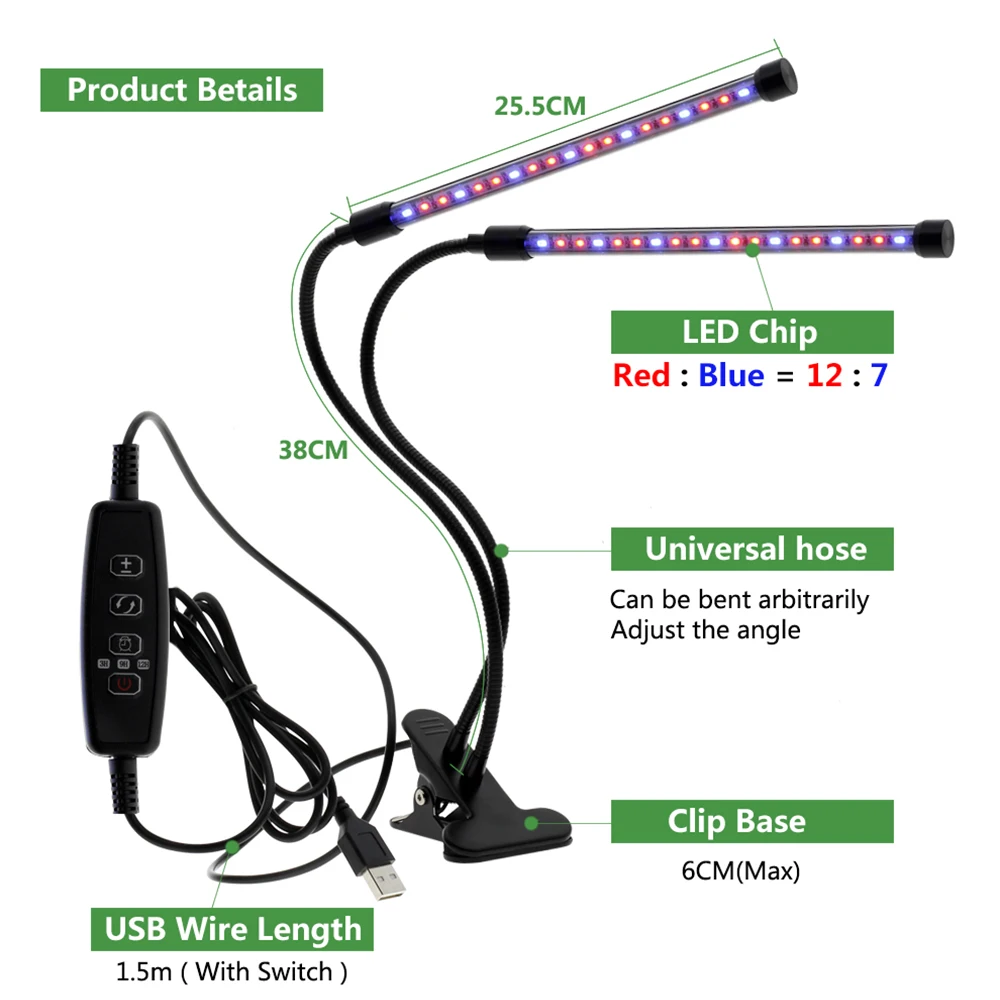 Фитолампа, светодиодная лампа полного спектра для выращивания растений с USB, 5 В