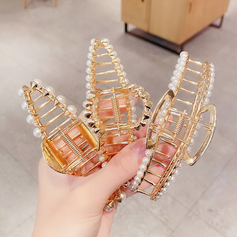 NameLuxury Crystal Pearls Geometric Big Metal Hair Claws
