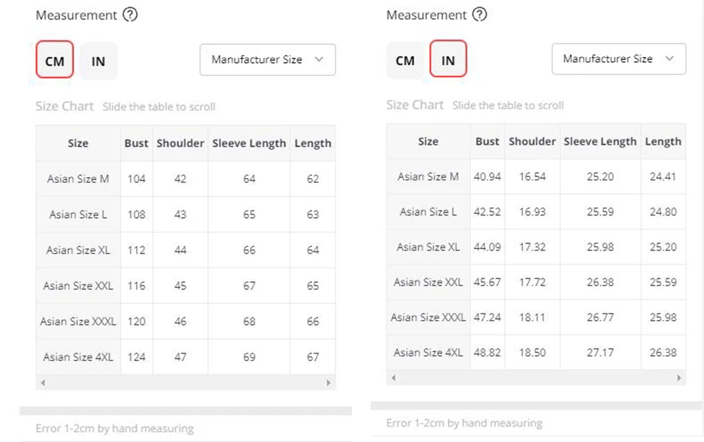 2. Таблица размеров представлена выше. Пожалуйста, тщательно Выберите свой размер.
