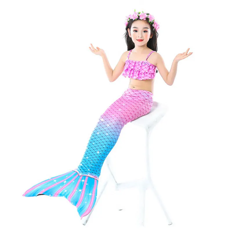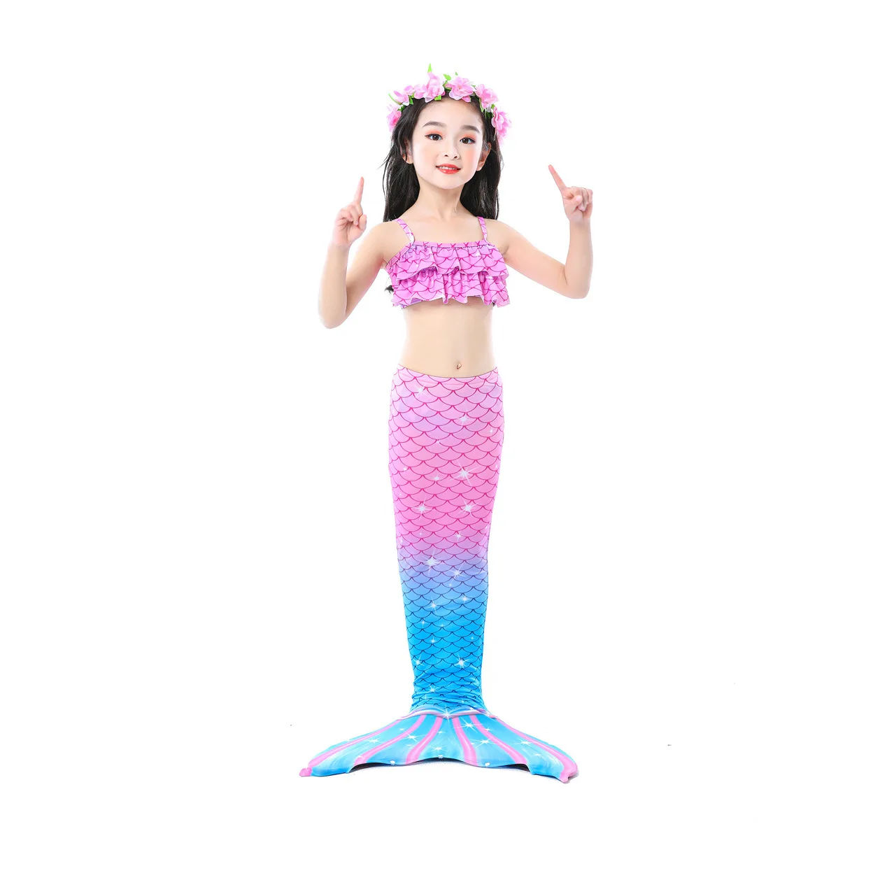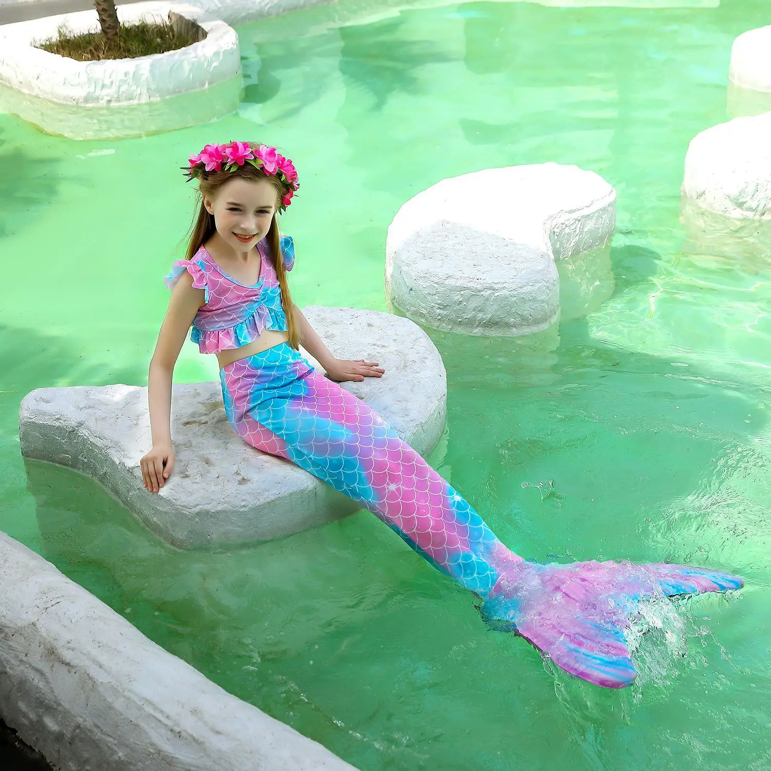 Купальный костюм для девочек с хвостом русалки, детский купальный костюм для косплея, Пляжное бикини с фантазией, с моноластами, подарок на день рождения