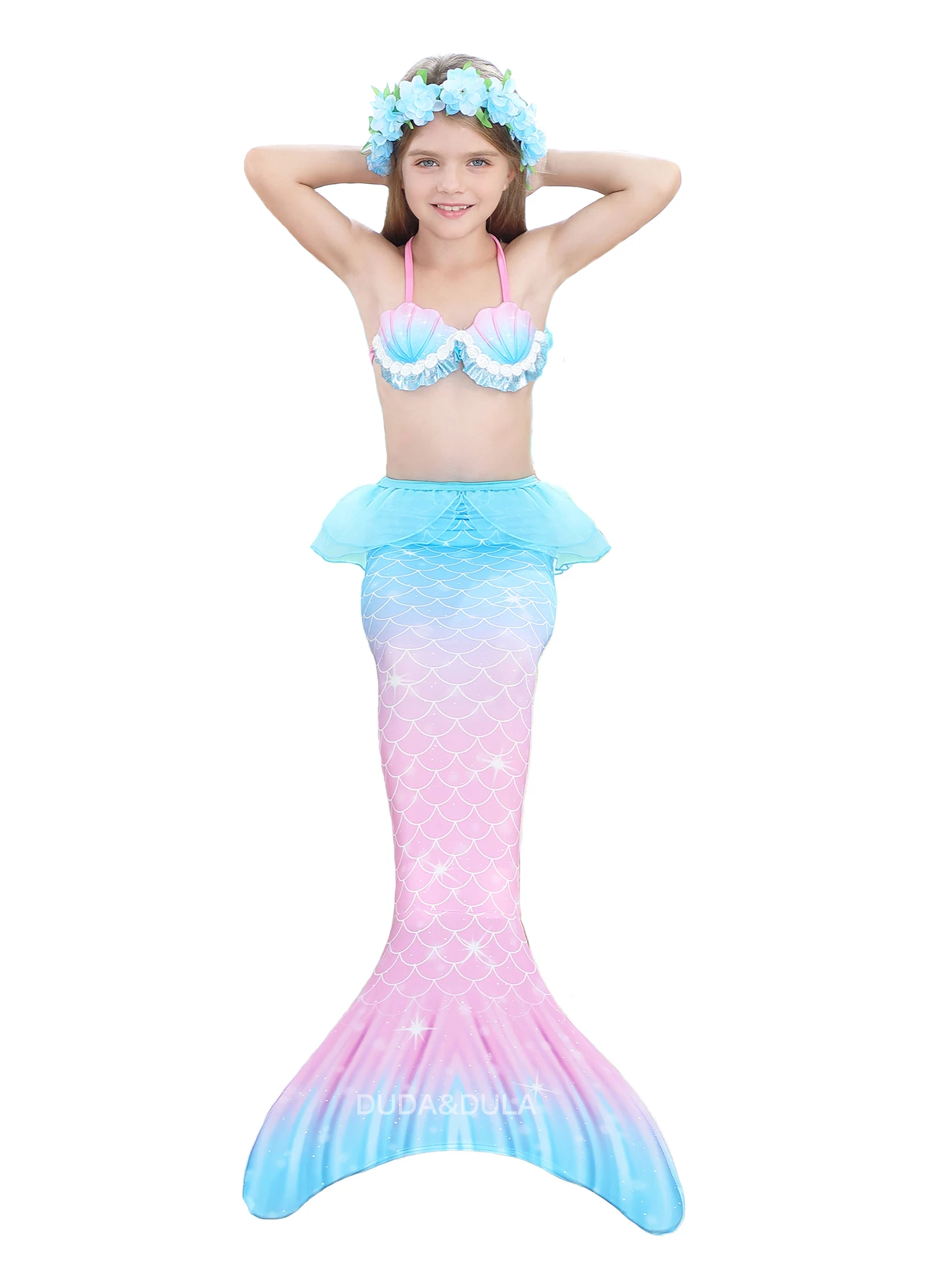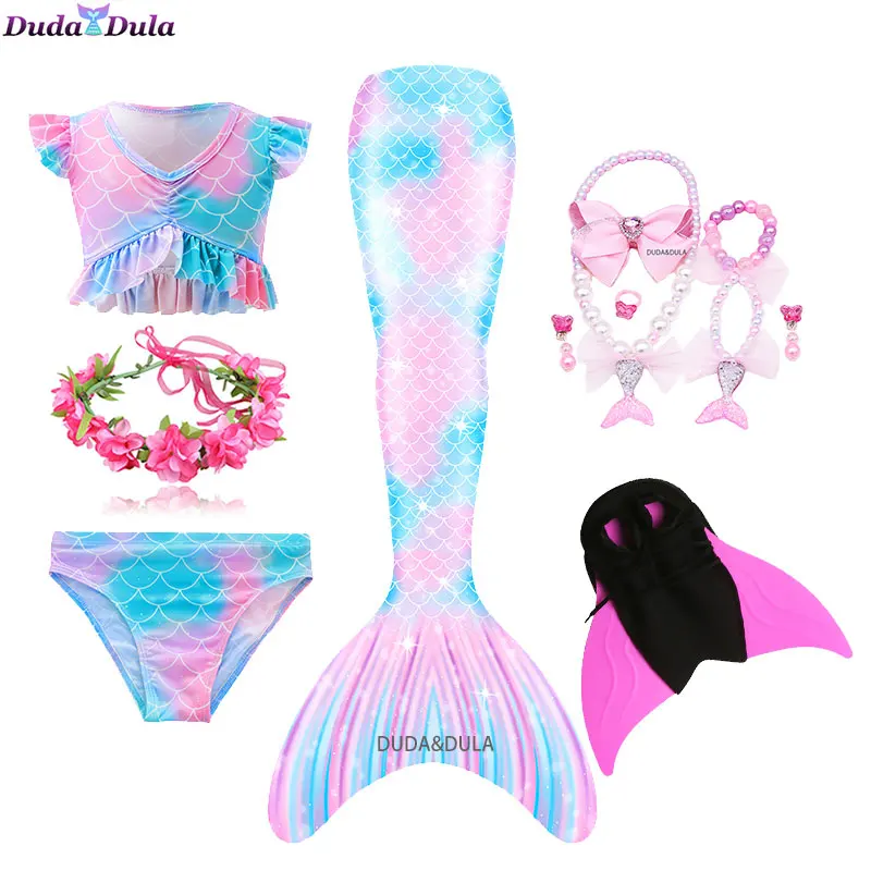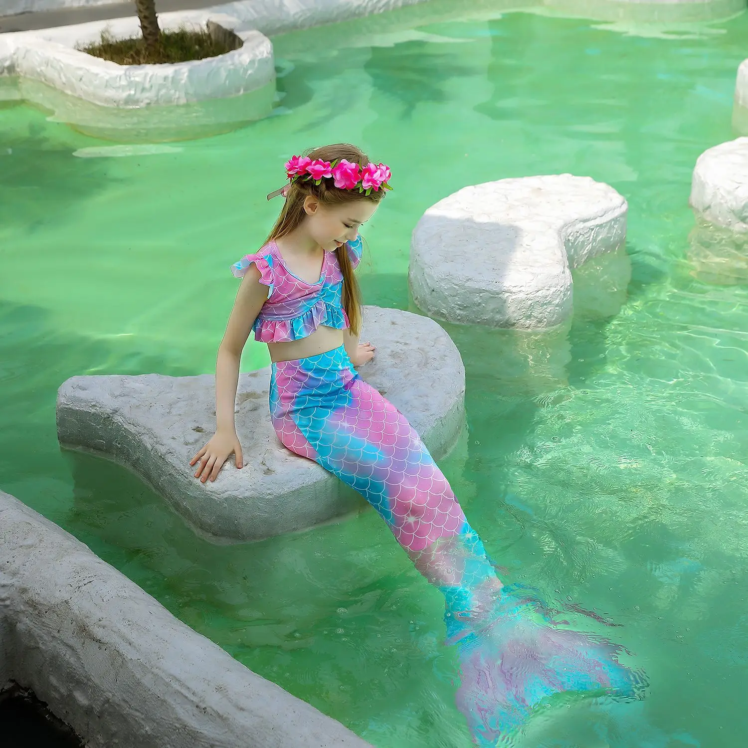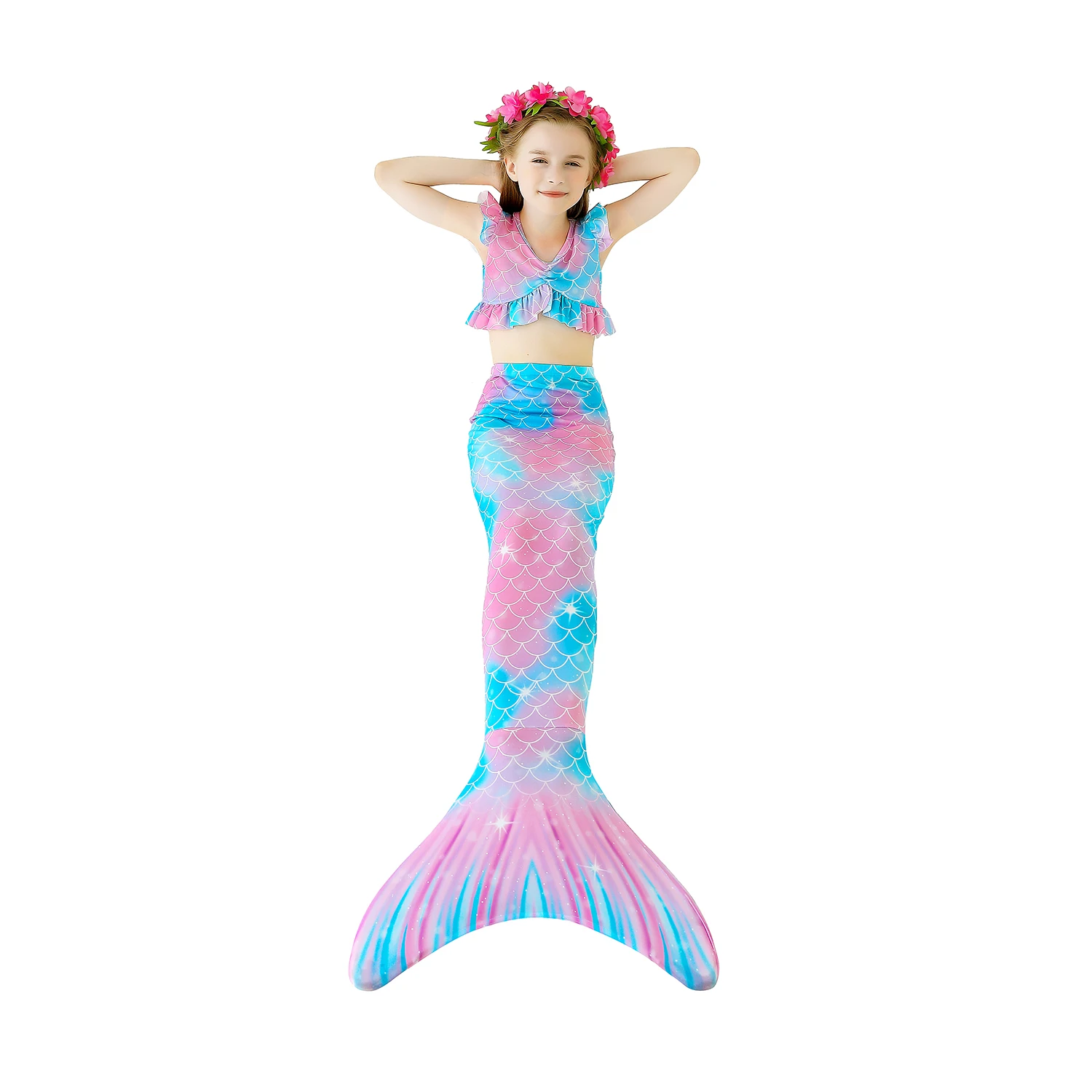 Купальный костюм для девочек с хвостом русалки, детский купальный костюм для косплея, Пляжное бикини с фантазией, с моноластами, подарок на день рождения