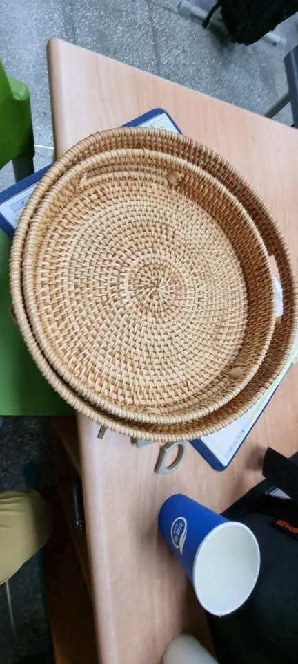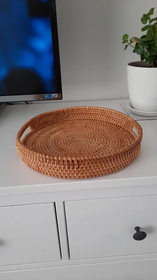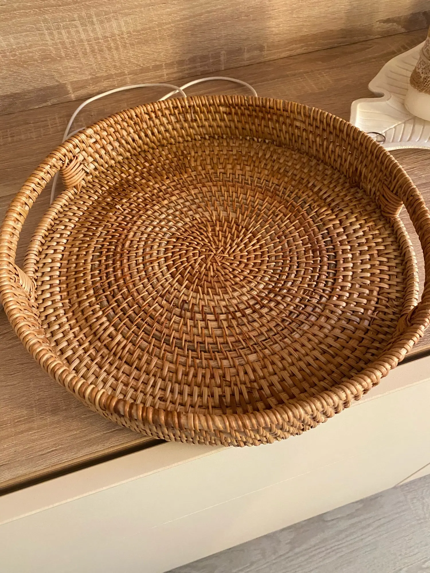 Корзина из ротанга, плетеная вручную тарелка для кофе, завтрака, отбивания, хранения еды, тарелка для хлеба с ручкой для напитков, закусок, чая