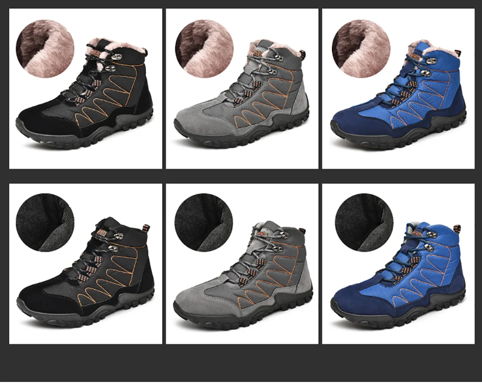 GRITION мужские походные ботинки водонепроницаемые зимние плюшевые треккинговые ботинки уличные кроссовки теплые Нескользящие дышащие черные 2020