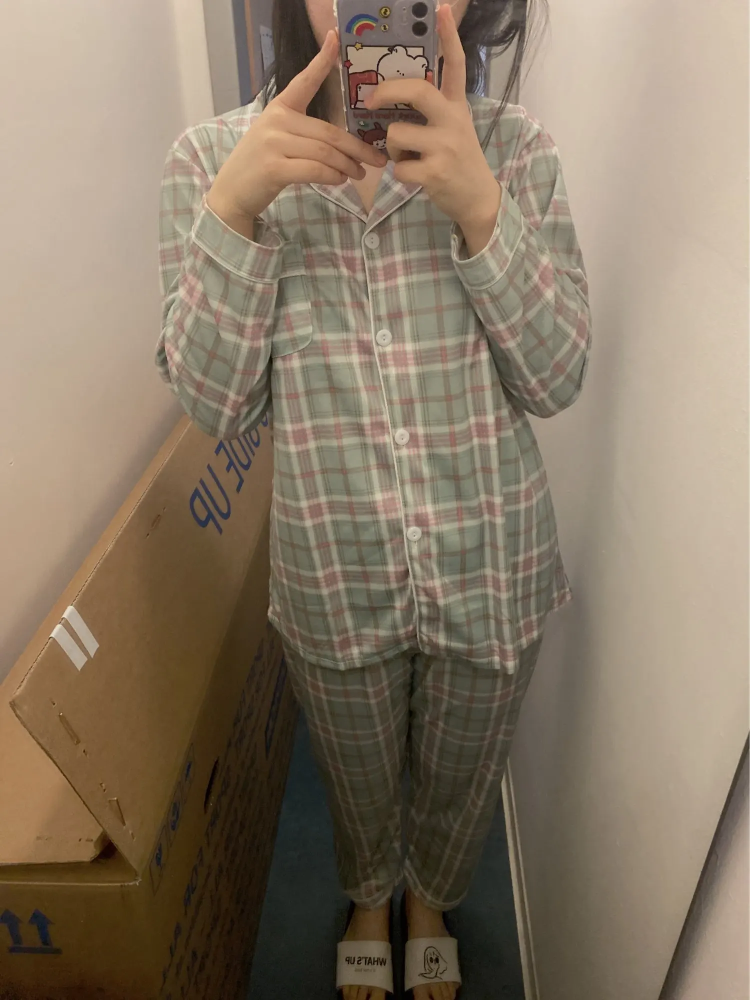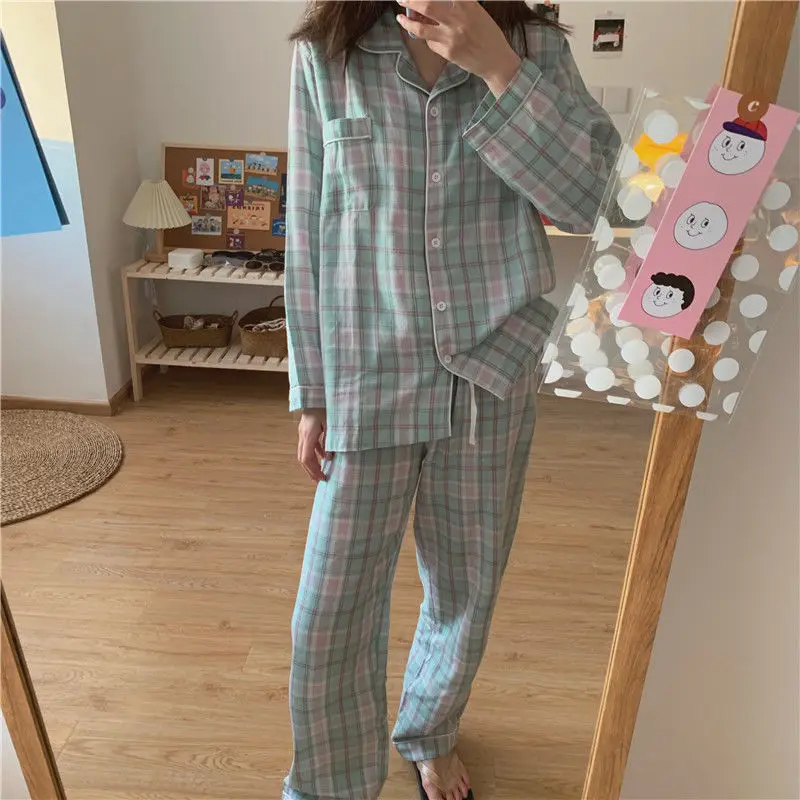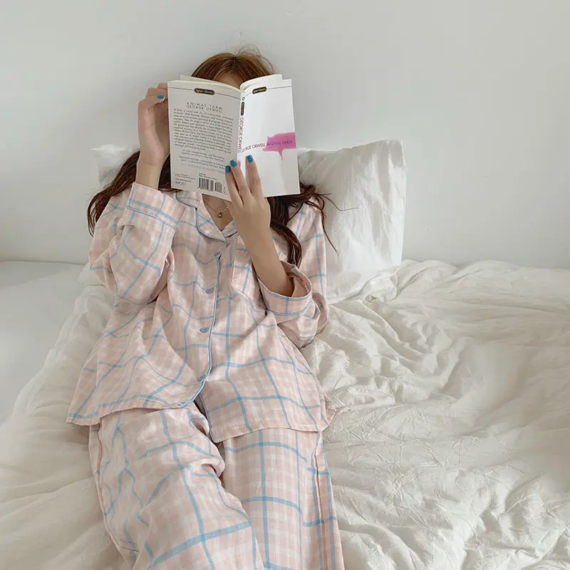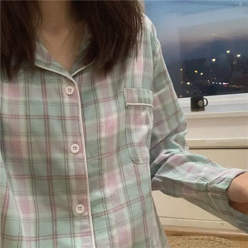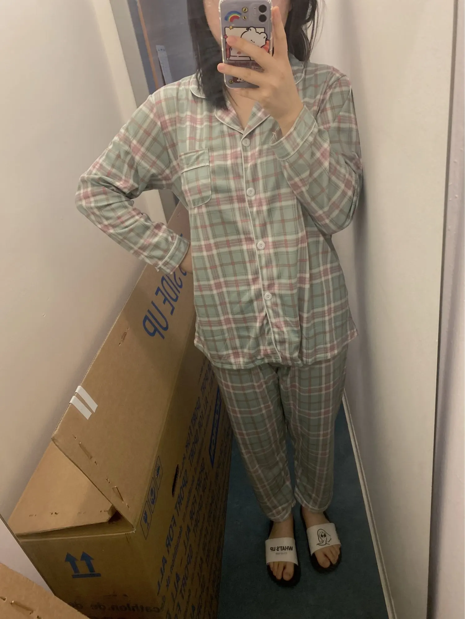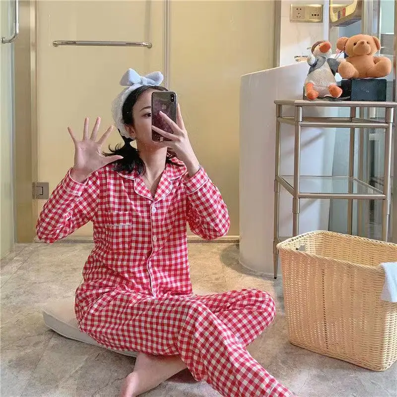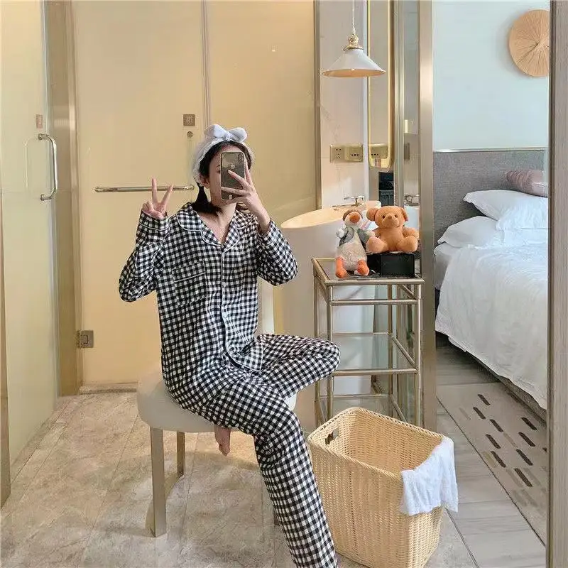 Пижама женская, с принтом, в клетку, с длинным рукавом
