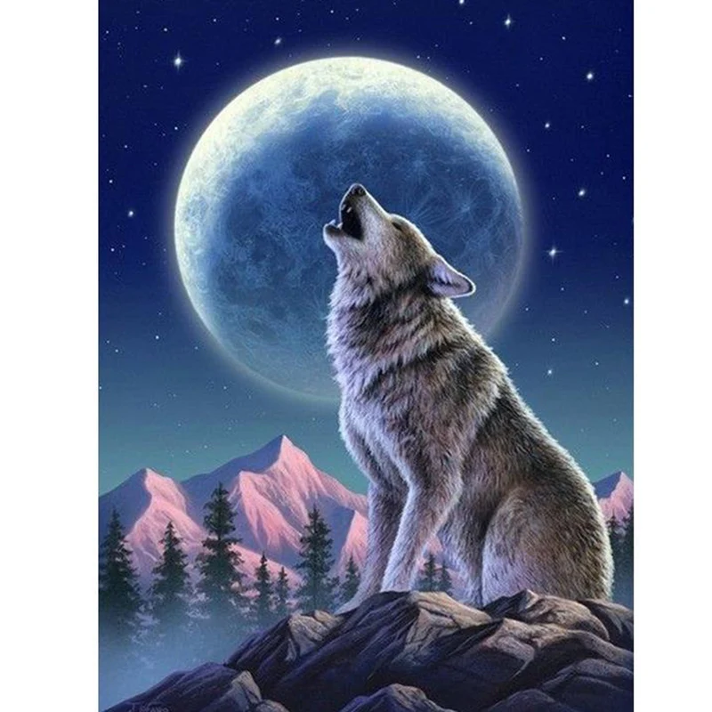 Набор для творчества, 5D, картина "Алмаз", луна, снег, волк, Кругла...