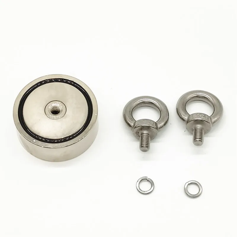 Сильный двухсторонний 2-глазный болт 1200lb вытягивающая сила круглый поисковый Магнитный речной F90 никель Неодимовый рыболовный магнитный держатель