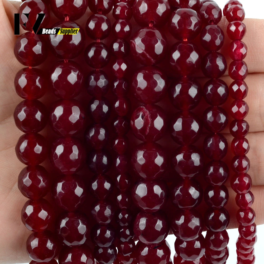 Бусины Из Натурального темно-красного граненого халцедона, круглые свободные бусины для самостоятельного изготовления ювелирных изделий, браслет, Шарм 4, 6, 8, 10, 12 мм, 15 дюймов