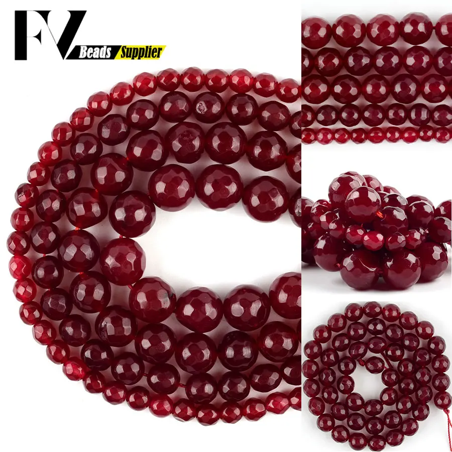 Натуральный Темный красный граненый Халцедон Круглые бусины Свободные Spacer Бусины для самостоятельного изготовления ювелирных изделий браслет 4681012 мм 15"