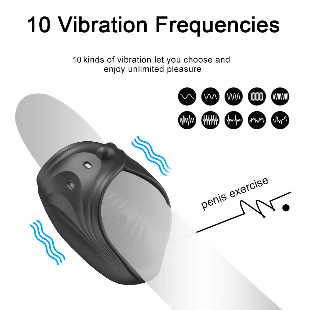 Силиконовое кольцо для задержки эякуляции, 10 частот, вибрирующее к...