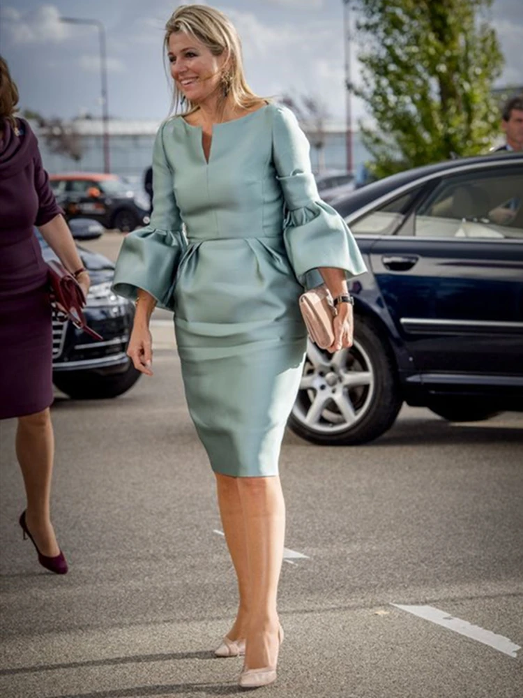 Винтажное атласное платье для матери невесты, официальное Вечернее Платье До Колена, с длинным расширяющимся книзу рукавом, бальное платье для выпускного вечера
