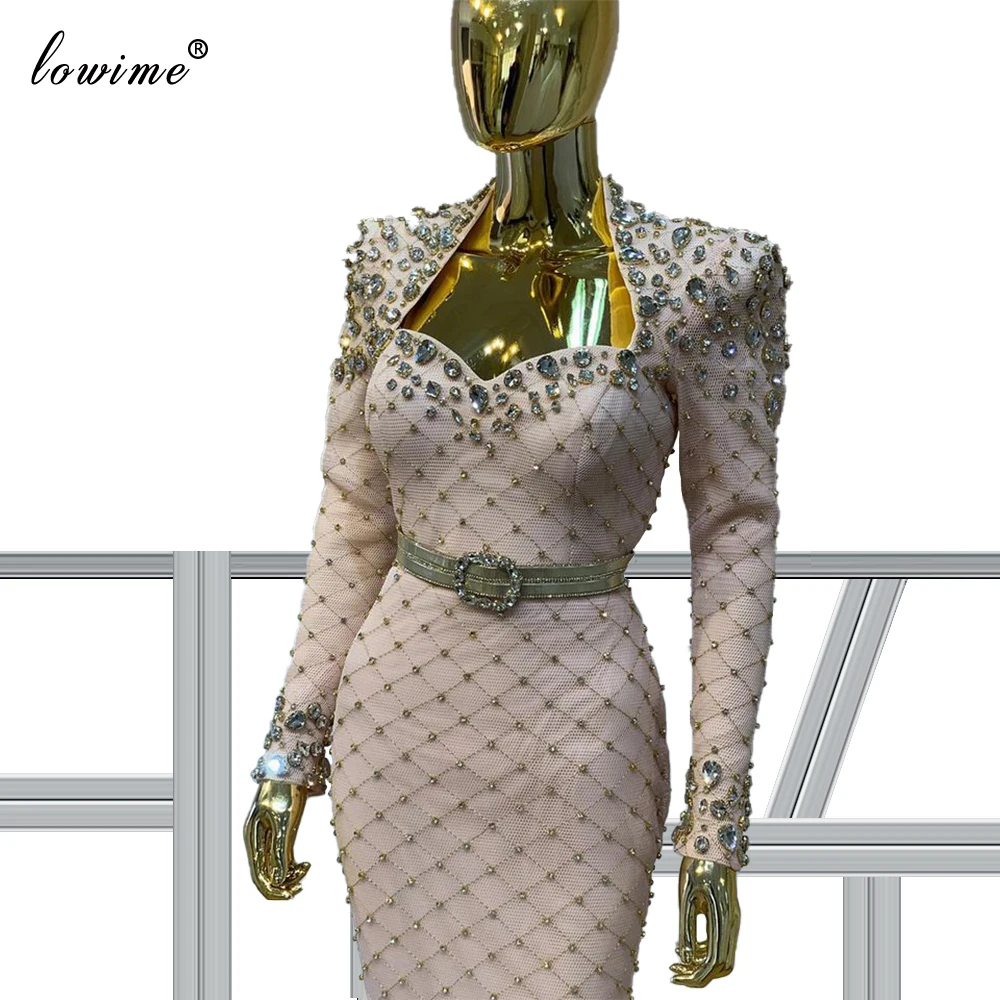 Кристаллами арабские коктейльные платья 2021 Русалка ботильоны Длина Выходные туфли на выпускной Платья для вечеринок для Для женщин одежда с длинным рукавом вечернее платье Vestidos