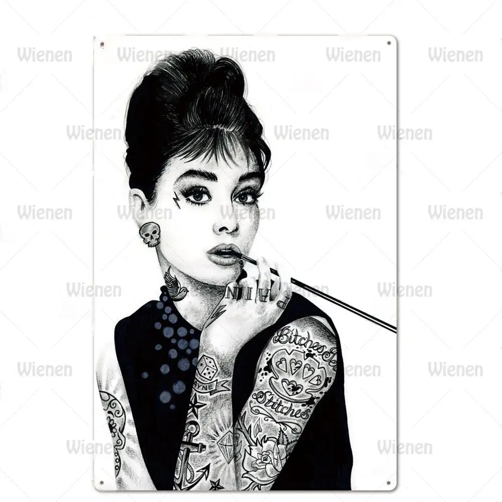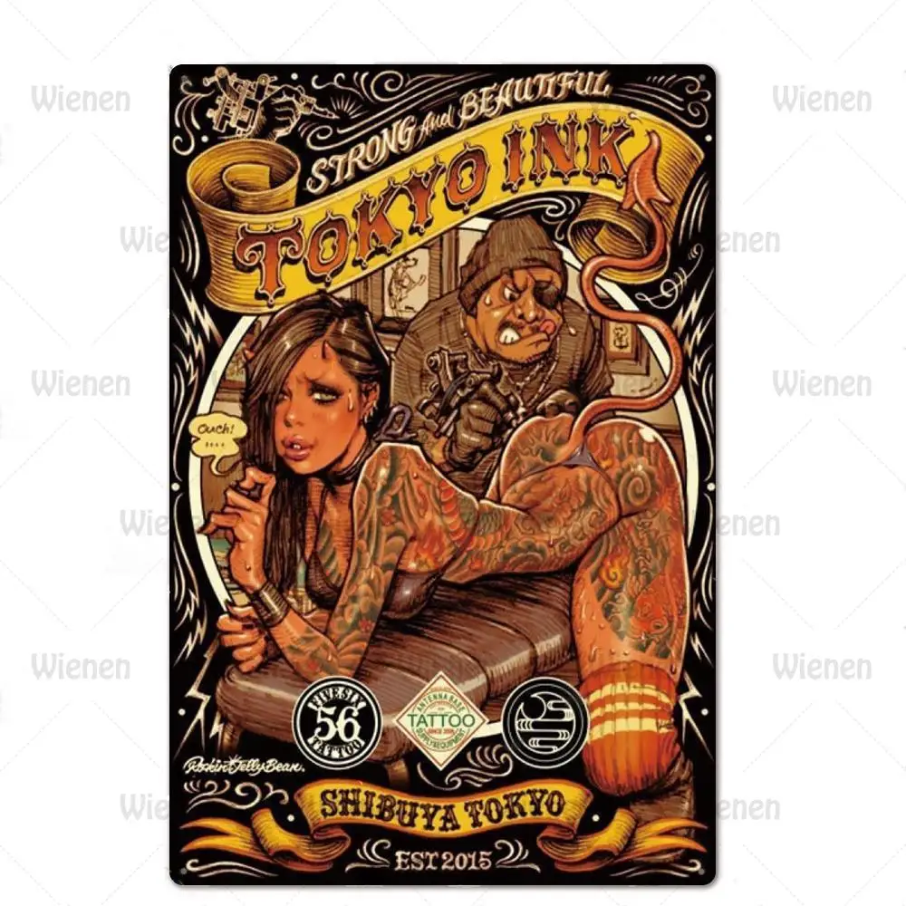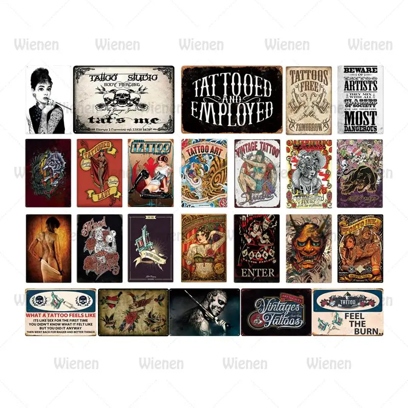 Магазин татуировки вывеска металлическая пластина татуировки Шпилька для девочек на шнуровке жестяная вывеска тату магазин украшения стены Винтаж художественной росписи Плакат 20x30cm