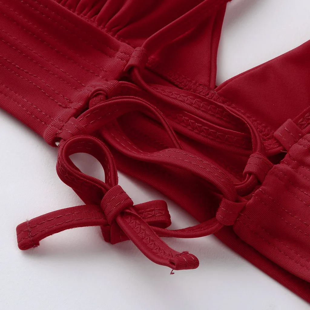 Пикантные женские летние купальники бикини комплект бюстгальтер с завязками по бокам стринги пляжный костюм купальный костюм размера плюс