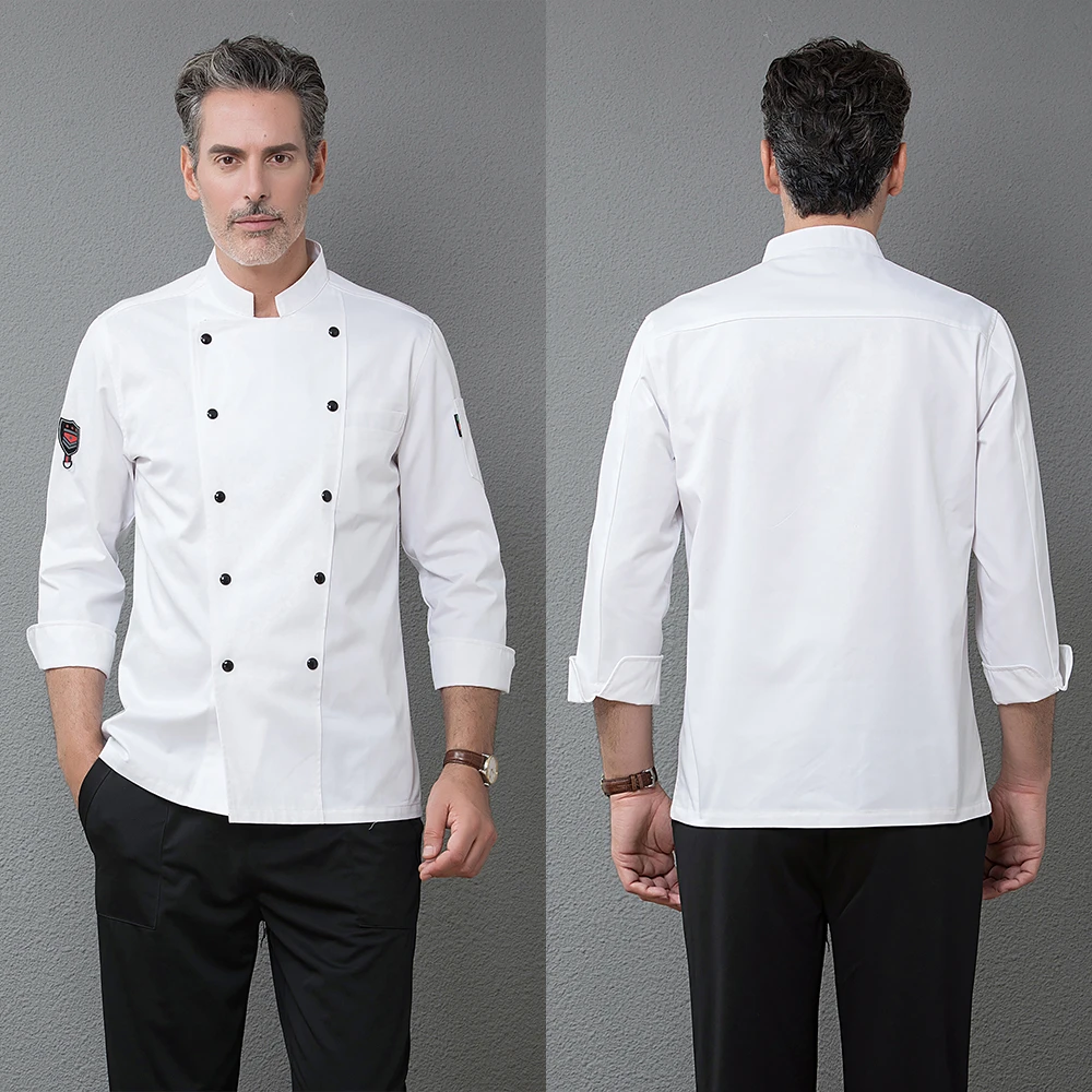 Унисекс форма шеф-повара с длинным рукавом, Комбинезоны для готовки шеф-повара, ресторана, кухни, отеля, кафе, пекарни, парикмахерской, рабочая одежда для официанта