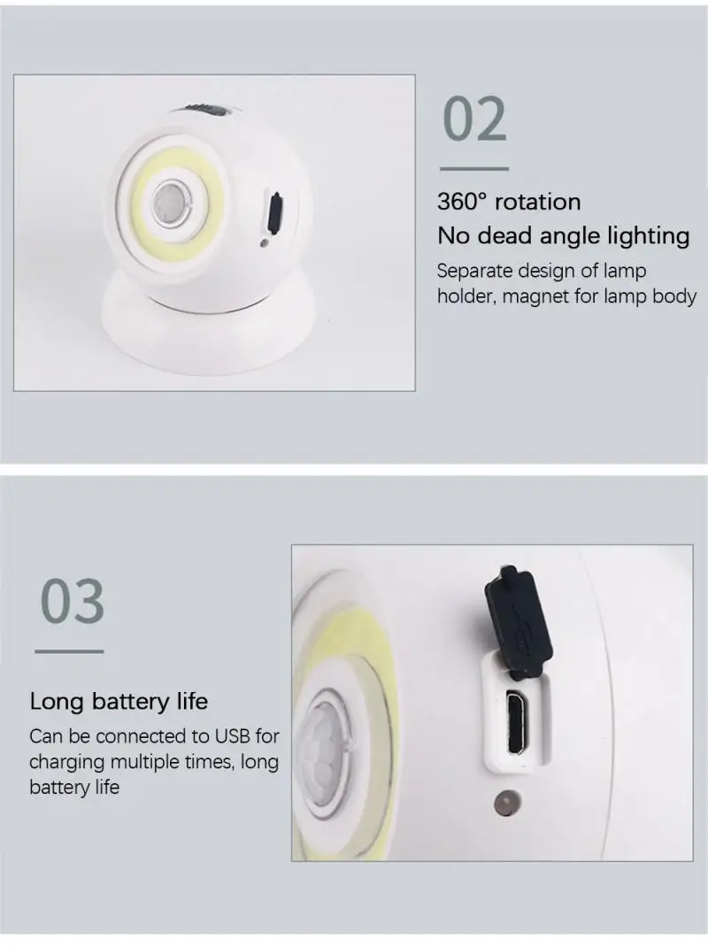 Название продукта: 360 ° COB Индукционная лампа для человеческого тела шаровая батарея