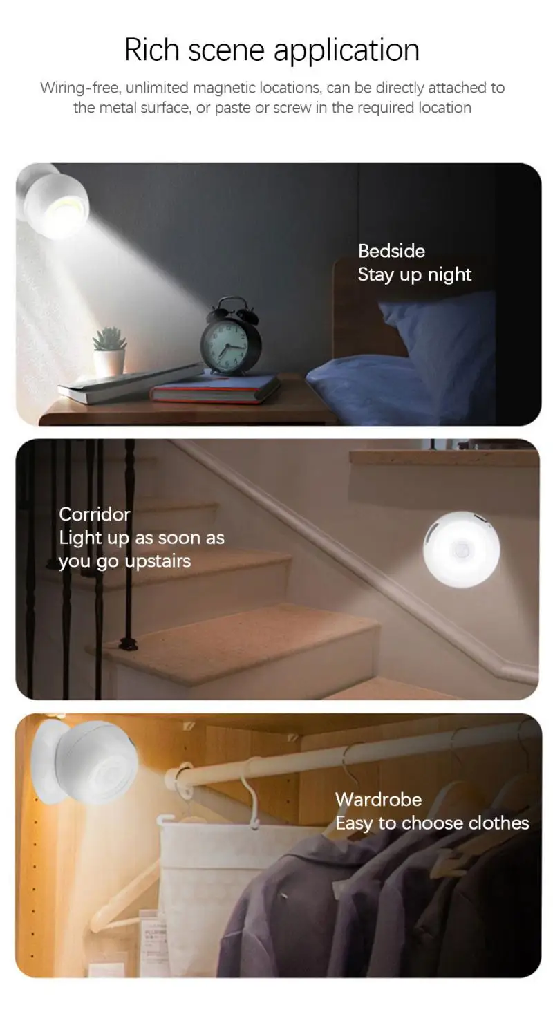 Магнитный мини-ночник с пассивным ИК датчиком движения, светодиодный Ночной светильник на аккумуляторах, лампа с COB матрицей, настсветильник светильник