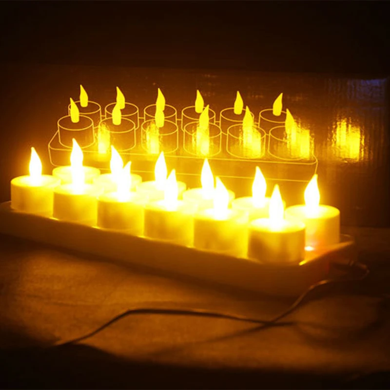 Перезаряжаемые светодиодные электрические свечи, беспламенные мерцающие чайные ОГНИ, украшения на Рождество, вечеринки, мероприятия, свадьбы, набор