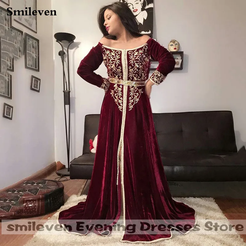 Smileven фиолетовые вельветовые кафтан арабские вечерние платья сек...