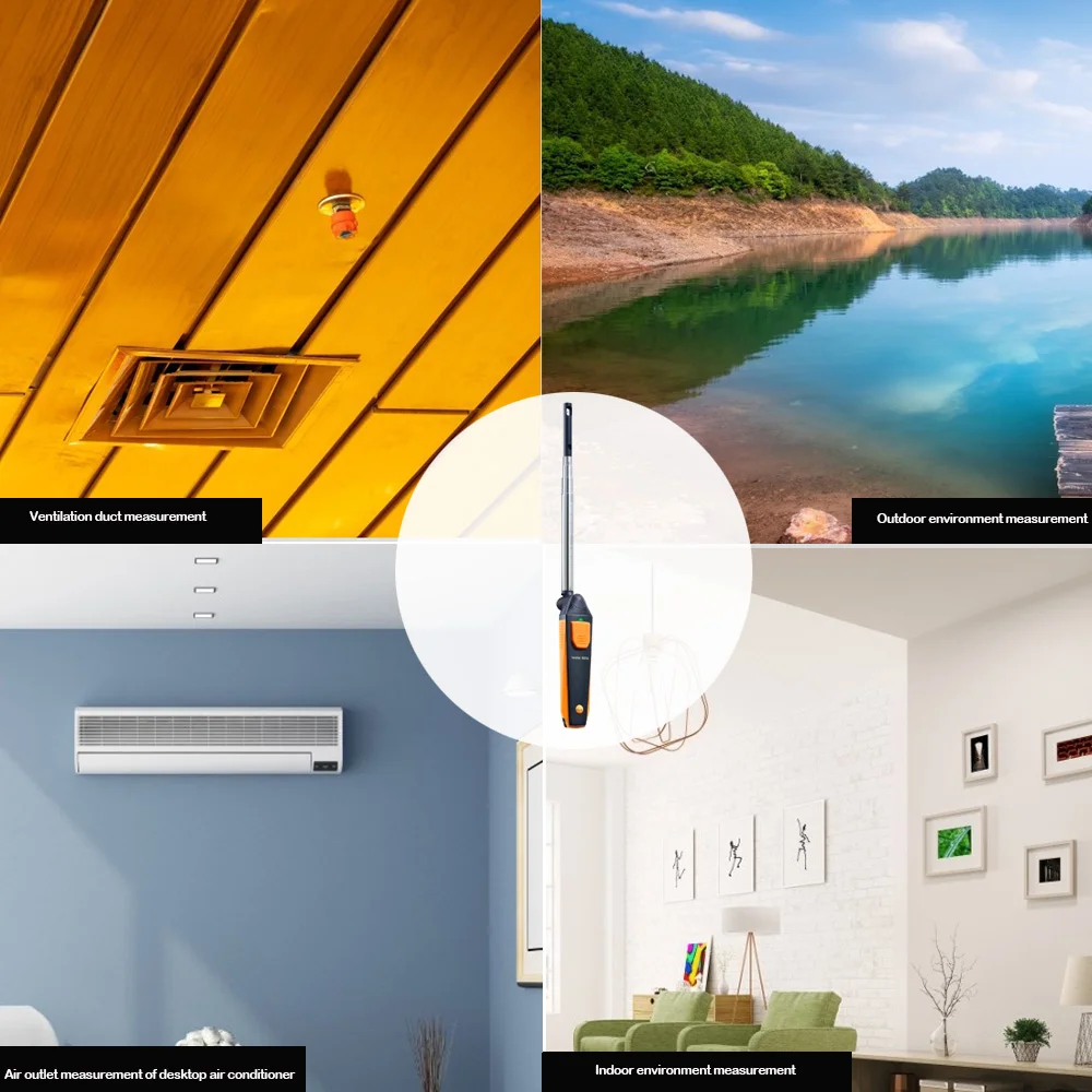 1. Беспроводной мини-анемометр testo 405i с горячим проводом, управляемый приложением Testo Smart Probe, очень подходит для измерения вентиляционных каналов. Этот Анемометр можно удобно использовать для измерения скорости воздуха, температуры и объема потока.2. testo 405i также очень подходит для измерения скорости ветра в помещении. Например, это очень полезно для поиска негерметичных окон. В сочетании с testo 605i, он также может рассчитать емкость охлаждения и выход нагрева. Testo 405i помогает уменьшить ошибки в измерениях3. Через умное оборудование, Реализуйте операции независимо от места измерения:Testo 405i в сочетании с приложением Smart Probe. Это означает, что вы сможете воспользоваться многочисленными дополнительными функциями вышеуказанных инструментов в своей повседневной работе. С помощью приложения Testo Smart Probe вы можете удобно просматривать данные измерений на вашем смартфоне или планшете, И вам больше не нужно тратить много времени на анализ данных измерений, полученных из удаленных точек измерения. Кроме того, поток объема может быть легко измерен с помощью этого приложения: вы вводите параметры поперечного сечения трубы, и приложение может автоматически рассчитать соответствующий полный результат для вас.4. Кроме того, приложение также предоставляет другие варианты: оно может не только отображать данные измерений, но также оценить и записать эти данные. С помощью этого приложения вы можете легко выполнять временные и Многоточечные средние вычисления. Вам нужно только нажать кнопку, чтобы отобразить кривую данных измерений и отправить запись данных измерений в формате PDF или Excel.