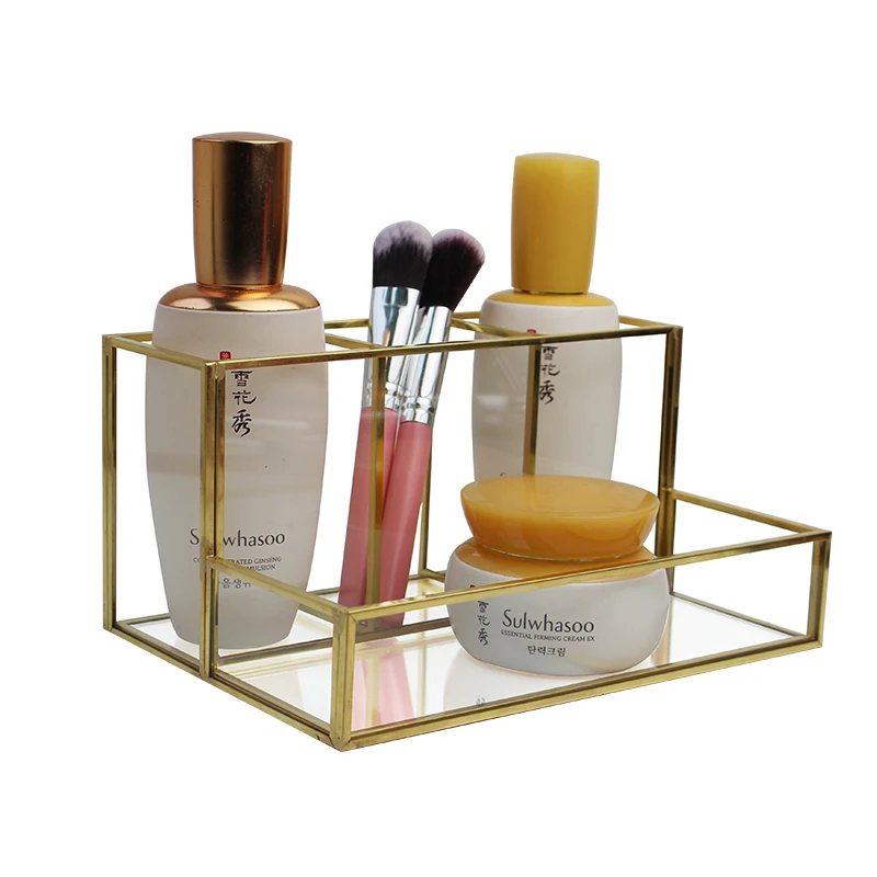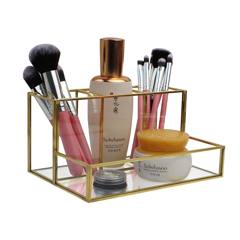 Коробка для хранения косметики, золотистая, настольная помада отделка, стеклянная клетка, классификация ювелирных изделий, органайзер для кистей для макияжа