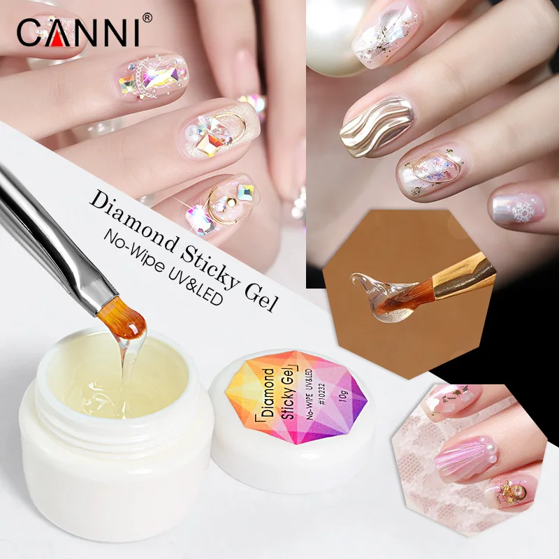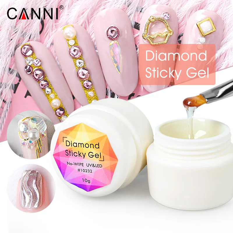 CANNI 10 г дизайн ногтей не очищающий Алмазный липкий гель замочить от УФ/LED ногтей камень липкий гель