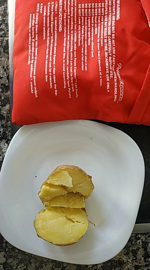 Я купил его во второй раз. Супер практично. 4 минуты в микроволновой печи, и у меня есть 4 маленьких картофеля.
