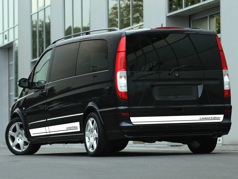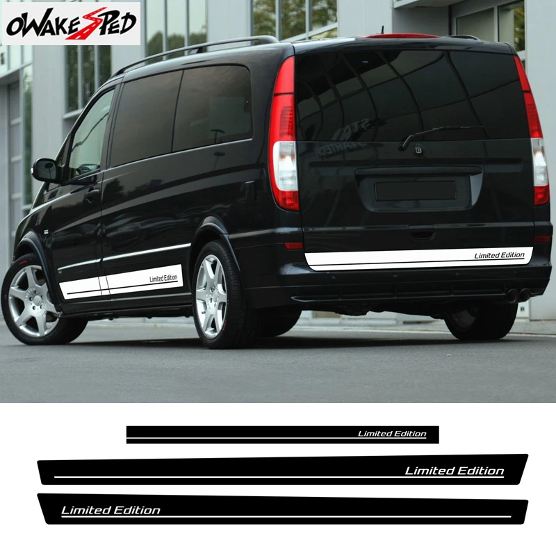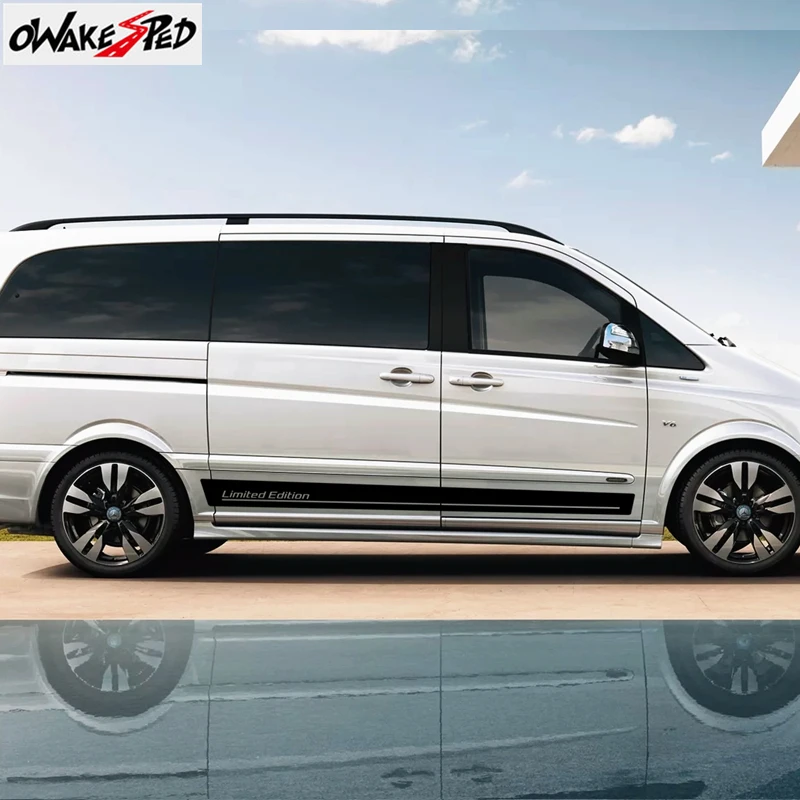 Ограниченная серия, в полоску, графическая Автомобильная боковая юбка для-Mercedes Benz Viano, автомобильные накладки на дверь, декоративные наклейки, Виниловая наклейка