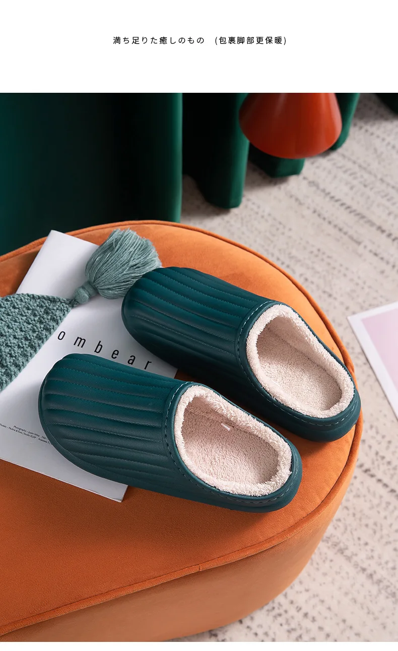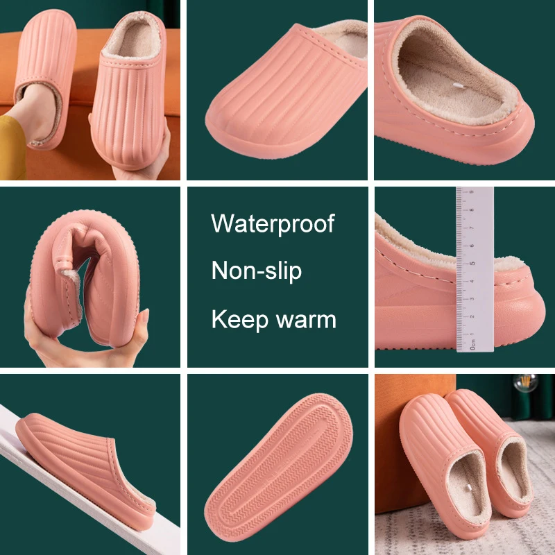 Водонепроницаемые тапочки; Плюшевые теплые тапочки из материала Eva; Женские зимние домашние Нескользящие домашние тапочки на толстой подошве для пар; Мужская домашняя обувь