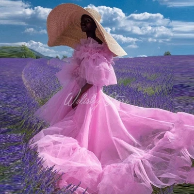 Розовое Пышное Тюлевое платье с оборками Сексуальные Платья для бер...