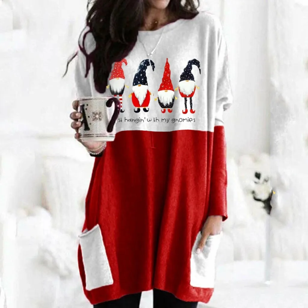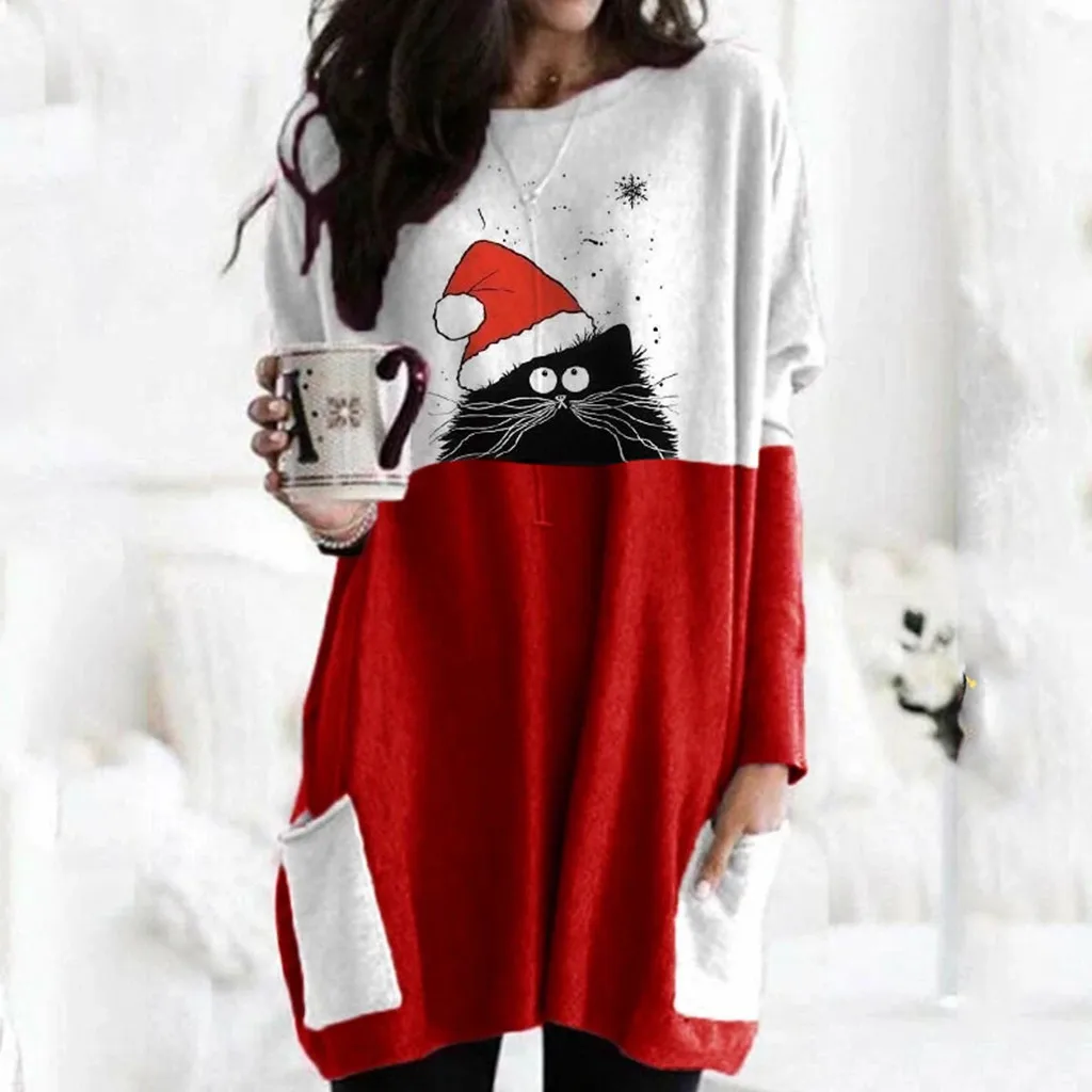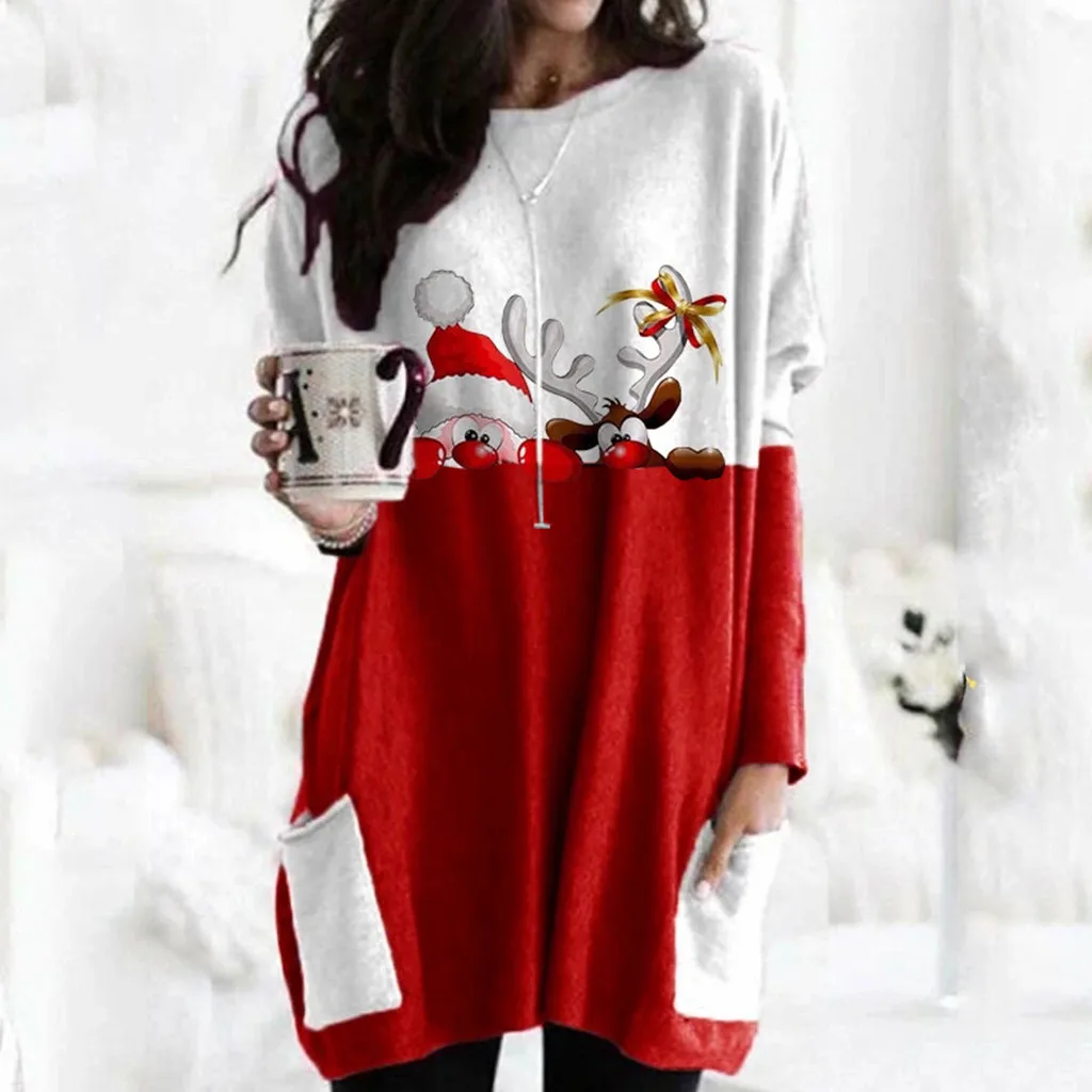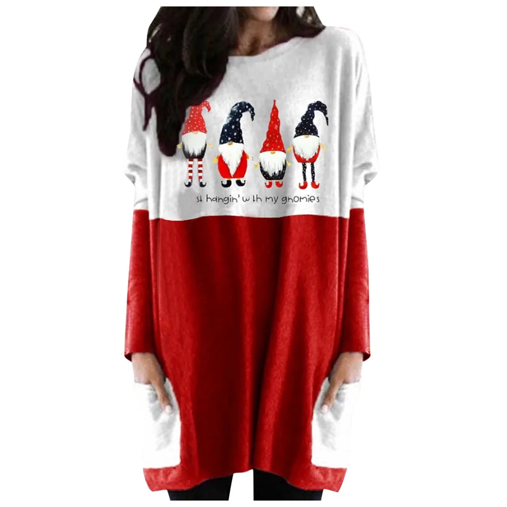 S-3XL женская одежда на Рождество с длинными рукавами Цвет блок к повседневному платью; Рождественское платье с принтом, платье с длинными рукавами и женское платье 6 *